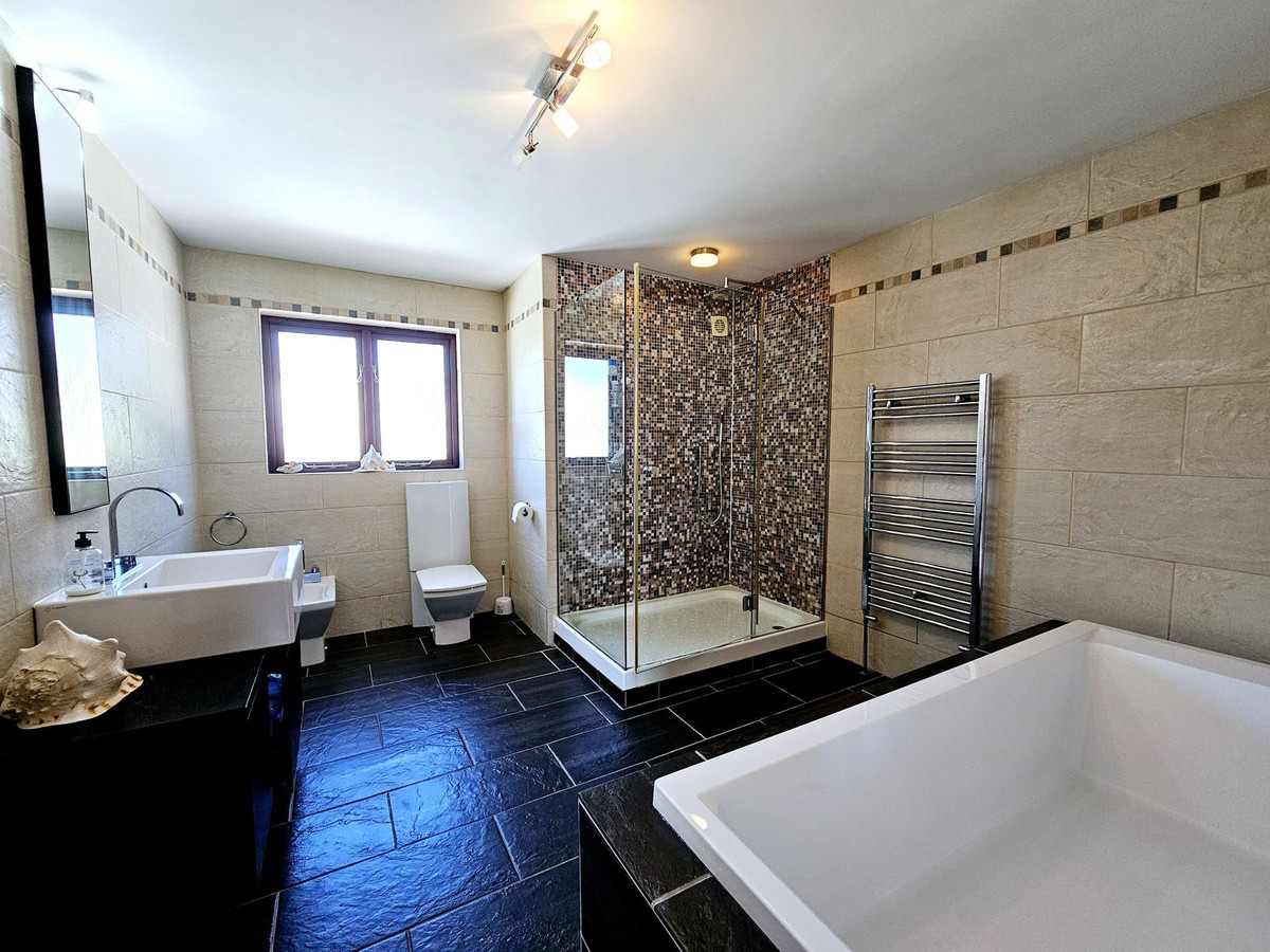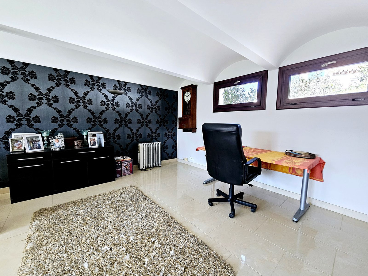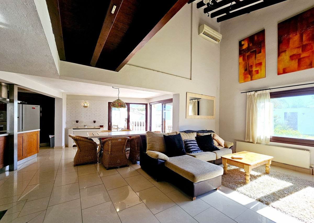 Ejendommen er blevet delvist istandsat og byder på enorme muligheder for opgradering eller fuldstændig renovering. Når man træder ind i villaen, bliver man mødt af en smuk andalusisk trædør, der åbner op i en entré. Til højre finder du en stor, lys stue, kontor, et stort soveværelse og et komplet badeværelse. Til venstre har du en anden stue/tv-område, et fuldt udstyret åbent køkken og spiseplads, som fører direkte ud til de overdækkede og udækkede terrasser og haven. Ovenpå finder du master bedroom med stort ensuite badeværelse, privat terrasse og privat adgang til haven. Der er yderligere tre soveværelser ovenpå, et med privat terrasse med havudsigt, alle soveværelserne er store og deler et overdimensioneret badeværelse med badekar og bruser. Der er et uudviklet mellemrum mellem to af soveværelserne, der nemt kan tilpasses til et Jack and Jill-badeværelse, hvis der er behov for et yderligere badeværelse. Alle soveværelser nyder godt af varm og kold aircondition,