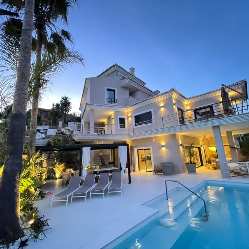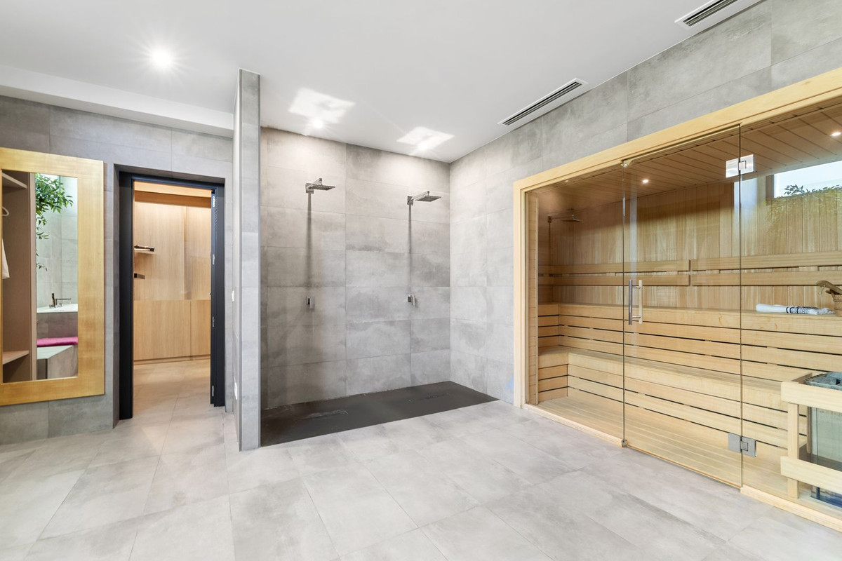 Egenskaber : Overdækket Terrasse, Indbyggede Garderobeskabe, Privat Terrasse, Solterasse, Sauna, Spillerum, Pulterrum, Vaskehus, En-Suite Badeværelse, Marmorgulv, Jacuzzi, Bar, Termoruder, Home Automation , Kælderen, Optisk Fiber.
