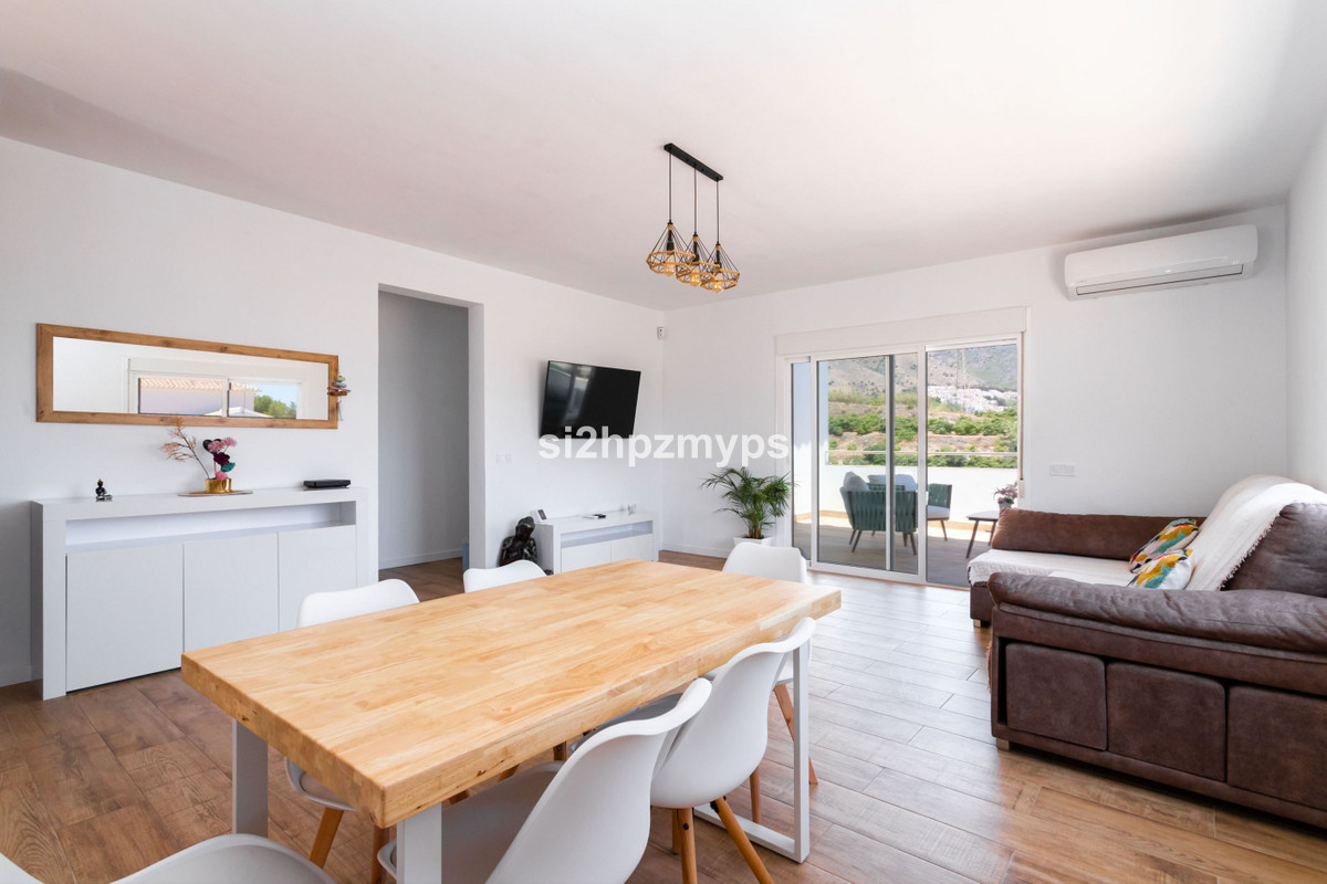 The property consists of a large living room with an open plan kitchen and a large terrace with a view of Rio Chíllar and Nerja city. There are also three large bedrooms and two bathrooms.