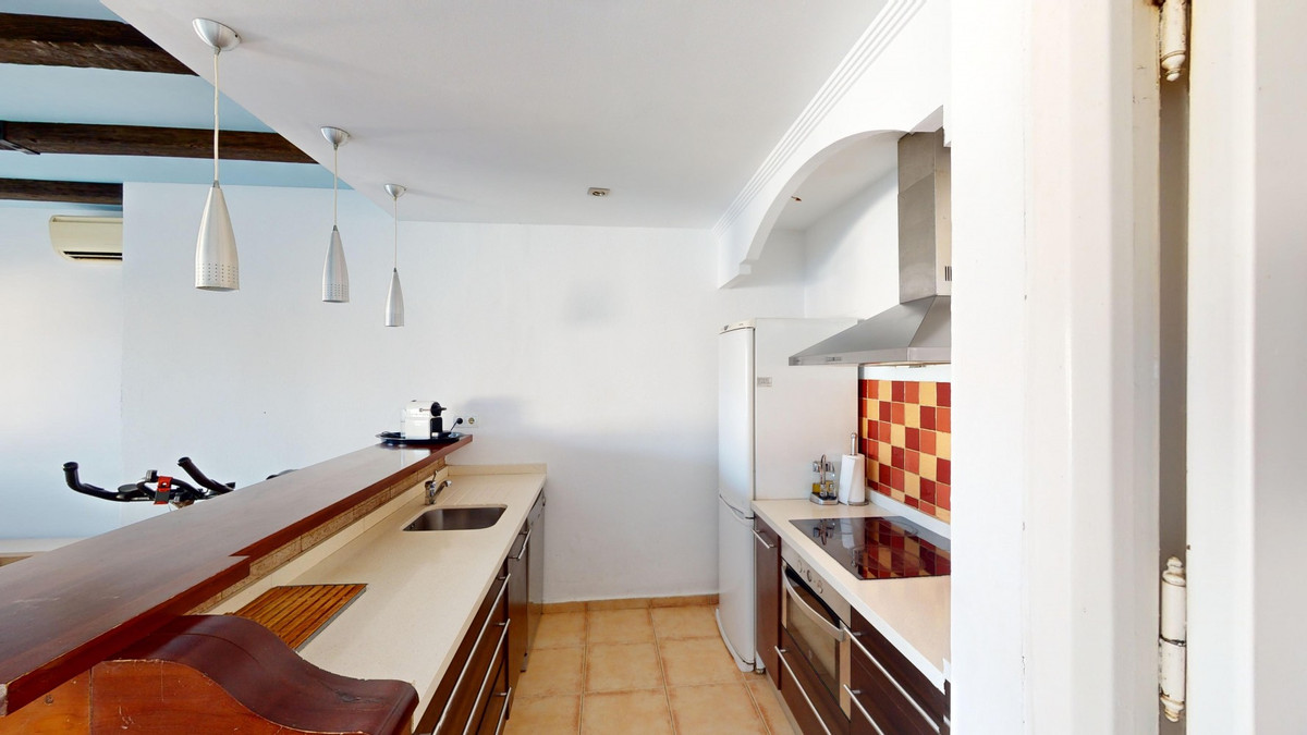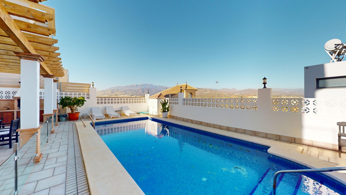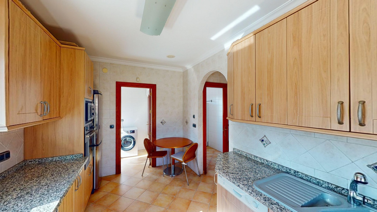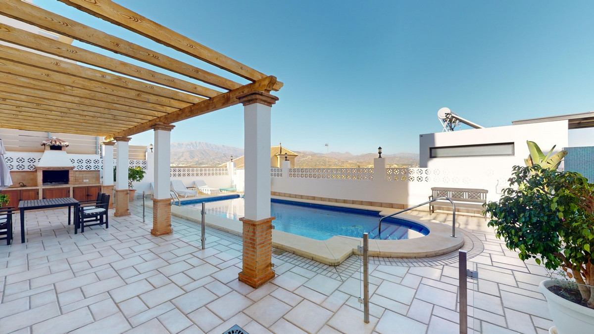 Oplev din drømmelivsstil i middelhavslivet i dette udsøgte tilflugtssted med 3 soveværelser og 4 badeværelser, der ligger i en privat og sikker urbanisering i Torre del Mar, hvor ro og sikkerhed er prioriteter. Dette eksklusive samfund med kun få naboer garanterer privatliv og fred, kun få minutter fra det pulserende centrum af Torre del Mar og kun 5 minutter fra de smukke strande. Dette mesterværk dækker et areal på 204 kvadratmeter fordelt på tre lyse etager og kombinerer moderne luksus med traditionel spansk charme. Fordyb dig i en atmosfære af elegance, hvor rustikke træbjælker pryder de høje lofter og skaber en varm og sofistikeret atmosfære. Opholds- og spisestuen i åbent koncept inviterer dig til at slappe af og nyde selskab, med naturligt lys, der filtreres gennem store vinduer og tilbyder fortryllende udsigt over de grønne landskaber. Gourmetkøkkenet er en madelskers drøm med slanke træskabe, granitbordplader af høj kvalitet og avancerede apparater. Store vinduer giver en malerisk udsigt, mens du laver mad. Det store soveværelse, et rummeligt 16 m2 stort tilflugtssted, kombinerer stil og komfort, mens de seks luksuriøse badeværelser, hvoraf det ene er dekoreret med turkise accenter, giver en spa-oplevelse derhjemme. Boligen er designet til den kræsne køber og tilbyder en perfekt balance mellem æstetik og funktionalitet, herunder et vaskerum og rigelig opbevaringsplads. Torre del Mar er en pulserende kystby, der er kendt for sine smukke strande, charmerende atmosfære ved havet og fremragende gastronomiske tilbud. Denne ejendom ligger kun en kort køretur fra den livlige promenade avenue og tilbyder den ideelle kombination af rolig livsstil og nem adgang til alle lokale faciliteter. Vi er glade for at kunne præsentere denne drømmeejendom for dig, enten personligt eller via en virtuel visning. Fordi denne verden er unik, ligesom vores Axarquía. I Andalusien. På Costa del Sol. Her, på livets solside...