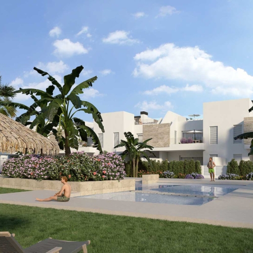 Vi er glade for at præsentere vores nye og eksklusive boligkompleks med 40 lejligheder, der kombinerer luksus, komfort og natur på ét sted. Med muligheder for 2 eller 3 soveværelser tilbyder disse lejligheder den fleksibilitet, du har brug for, for at tilpasse din bolig til dine behov. Du kan vælge mellem komforten ved en stueetage med privat have eller en øverste etage med privat solarium, perfekt til at nyde den utrolige udsigt over golfbanen.