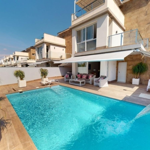 We are pleased to present this exclusive villa located in Torrevieja, it is built on a 699 m2 plot, it has a wonderful private pool, large porch, barbecue area, natural gardens.~ ~ The house is Mediterranean style and is divided into two floors and has a constructed area of 462 m2, it was built in 1992. The house has 5 bedrooms and 3 bathrooms, living room, fireplace, separate kitchen, gallery, jacuzzi, cellar , terraces and ample underground parking. Built with high quality materials. The basement has 131m2.~ ~ Torrevieja is located approximately 45 minutes from Alicante airport. Direct connection with the Torrevieja bus station. The coldest months are January and February, with temperatures ranging between 12 and 16 degrees and the hottest July and August with temperatures ranging between 28 and 35º C. Autumn -from October to December- is a season very temperate with temperatures ranging between 21 and 27º C.~ ~ Torrevieja has a microclimate that differentiates it from the rest of the surrounding towns. The proximity of two saline lagoons makes the climatological factors favorable.~ Do not miss the opportunity and contact us!~ ~