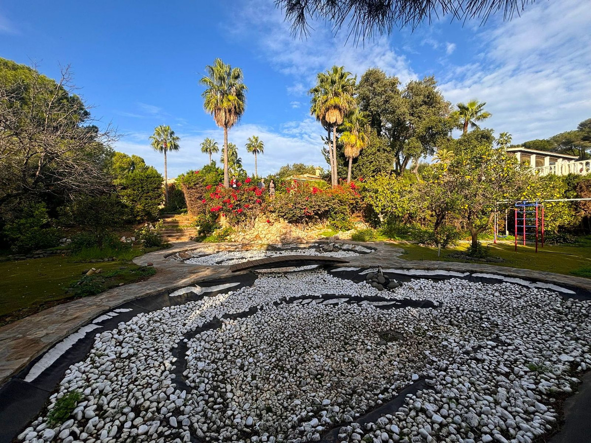The property currently includes a single-storey house with 6 bedrooms, 5 bathrooms, and spacious porches, as well as a garden with a heated pool, its own well, a pond with lighting, and an irrigation system. It also features auxiliary buildings such as a garage (170 m²), a service house (40 m²), and a workshop (20 m²).