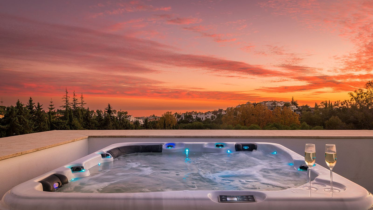 This Modern Villa is built in a plot of 1.380m2, surrounded by a green area of 2500m2 with exclusive access. A three storey villa plus the rooftop terrace – featuring an amazing solarium with a garden terrace and Jacuzzi with breathtaking/ superb views". façade of natural stone.
