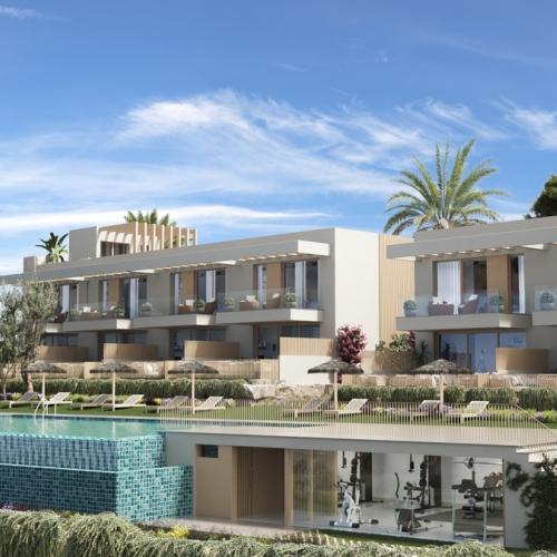 Vi præsenterer et sæt på 44 rækkehuse, tilgængelige med 2 og 3 soveværelser, hver udstyret med solarium, terrasser, patioer og privat parkering. Derudover har ejendommen fællesområder, herunder en fælles swimmingpool.