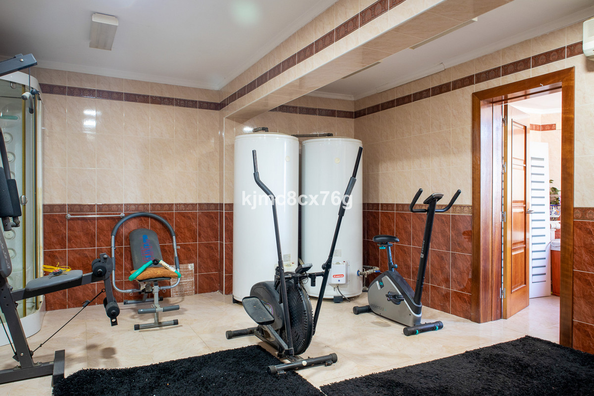The property welcomes us from its entrance, with parking for several vehicles. Entering the property there is a hall with an office, as well as a large bedroom ensuite. Taking the stairs we go down to the next level, with two bedrooms sharing a bathroom. Then we reach the stately living room, spacious, with fireplace and sitting room. Separate dining room, connected to the kitchen by an elegant handrail. The kitchen is large, with a large island in the middle, ideal for cooking or having breakfast. Exit to one of the terraces. Finally large bedroom ensuite with dressing room. Large gymnasium.