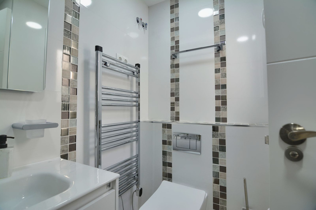 There are two complete bathrooms, one featuring a hydromassage bathtub and the other en suite to the master bedroom, equipped with a modern walk in shower. One of the bedrooms has direct access to the terrace, allowing you to enjoy the coastal atmosphere and sea views from the comfort of your own room.