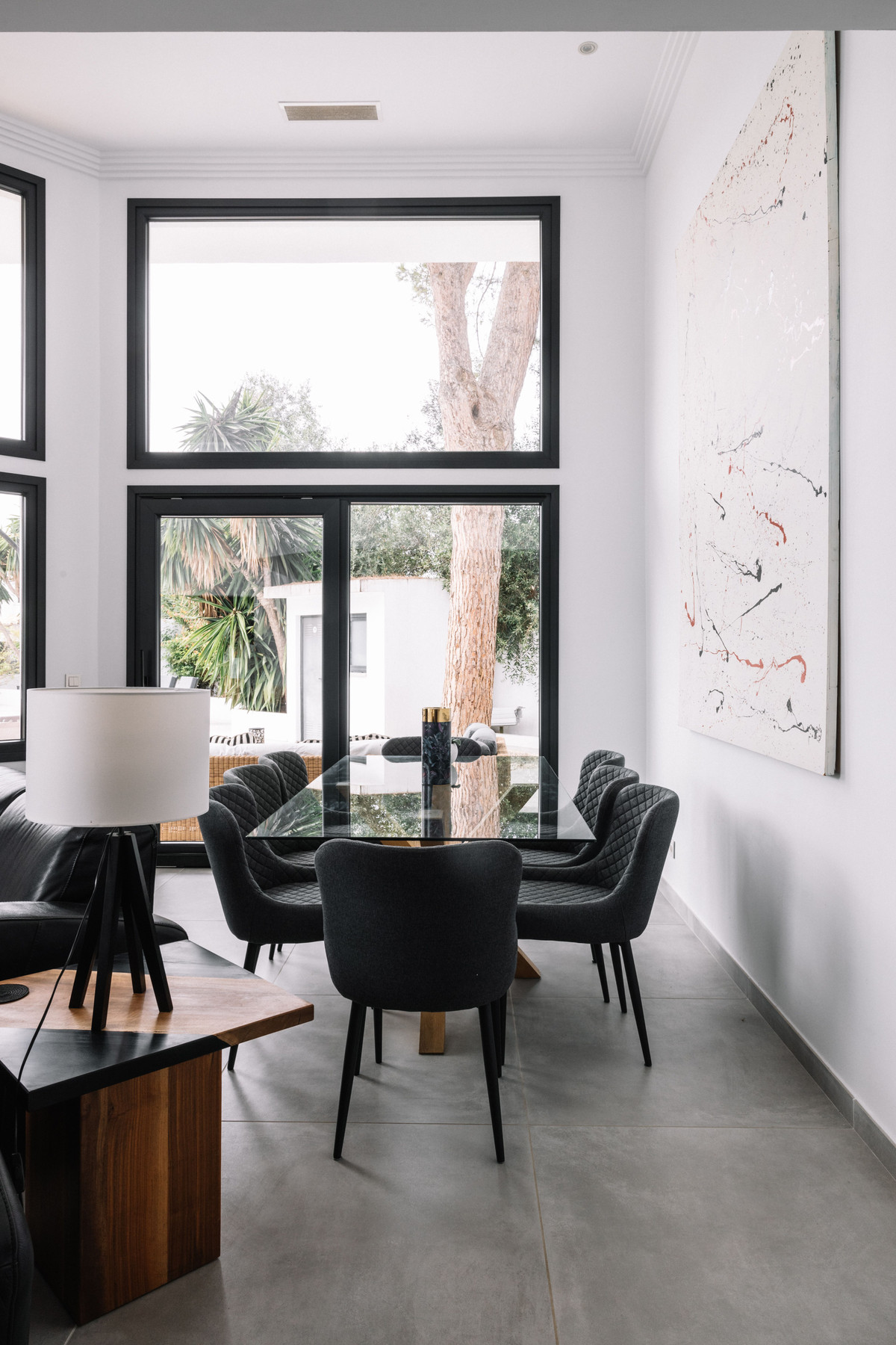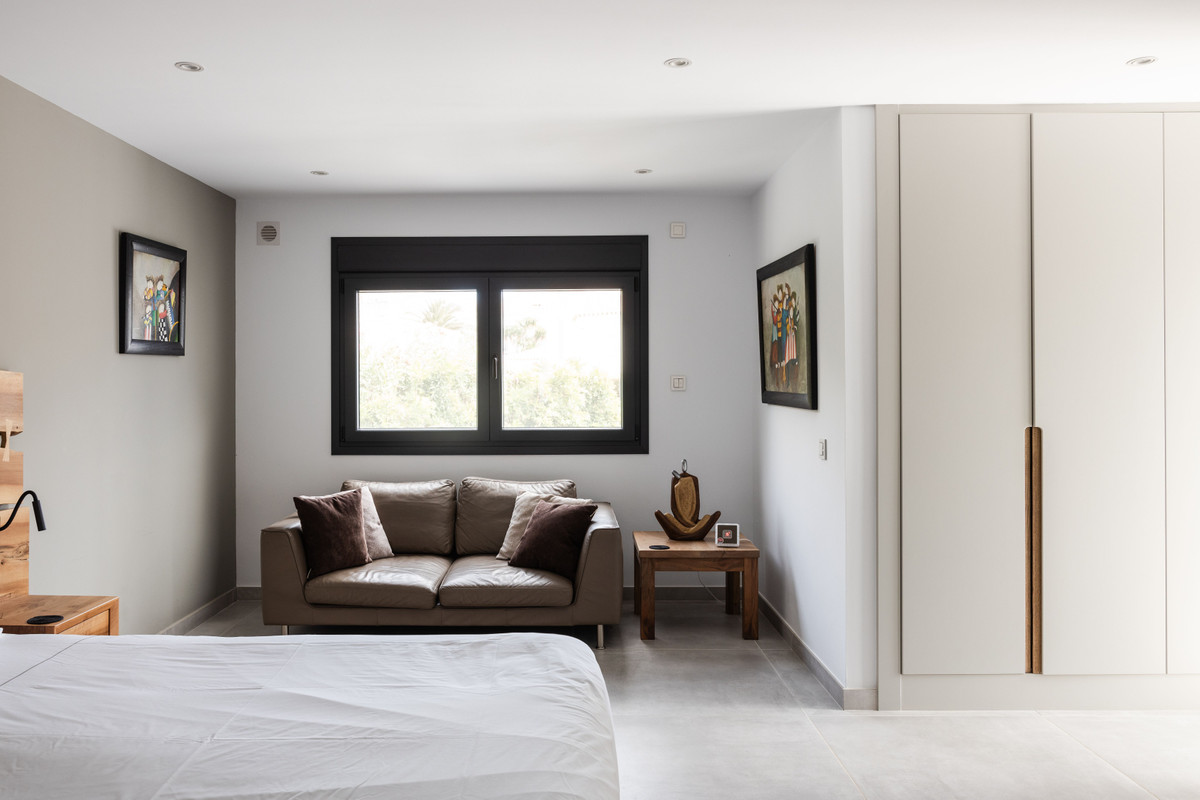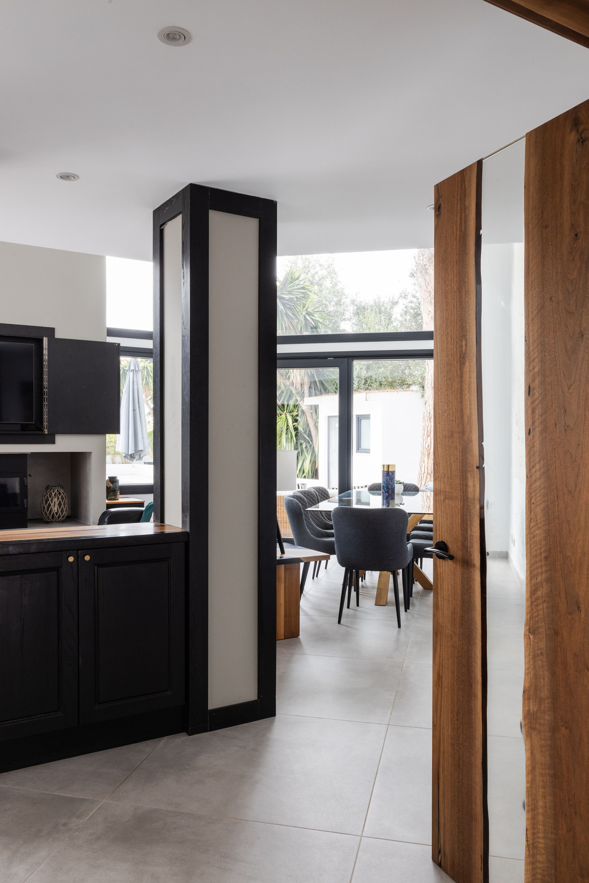 Distinctive wooden accents, handcrafted by a masterful local artisan, lend a touch of bespoke artistry throughout the home. The villa further benefits from underfloor heating, ensuring year-round comfort.