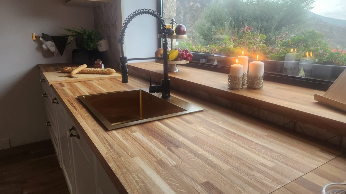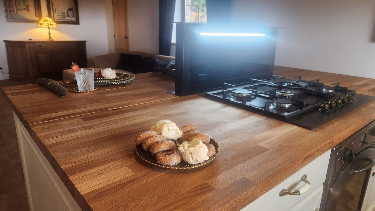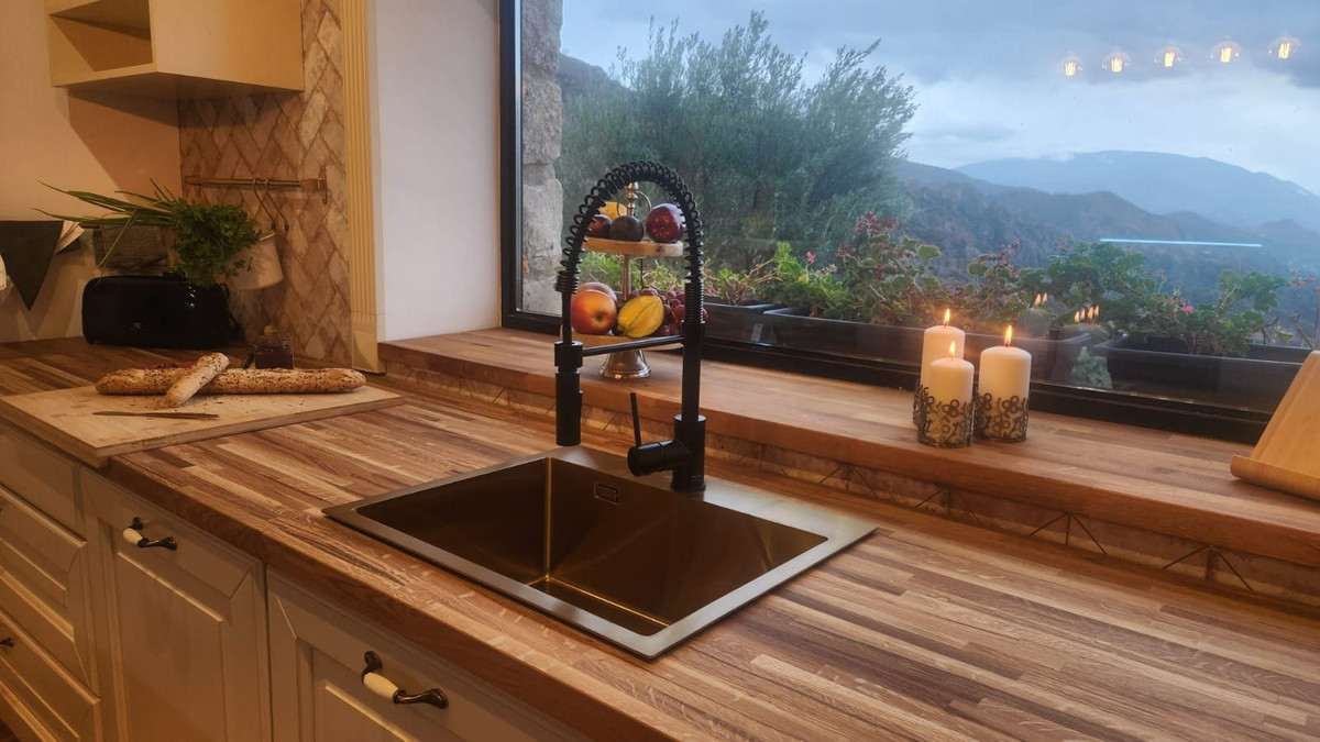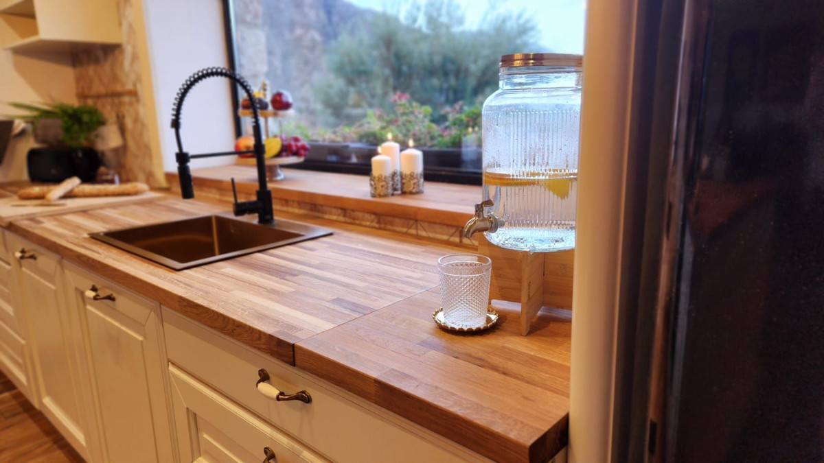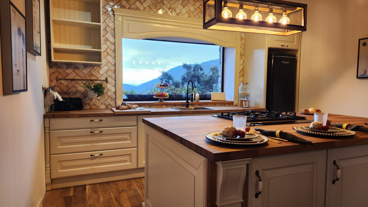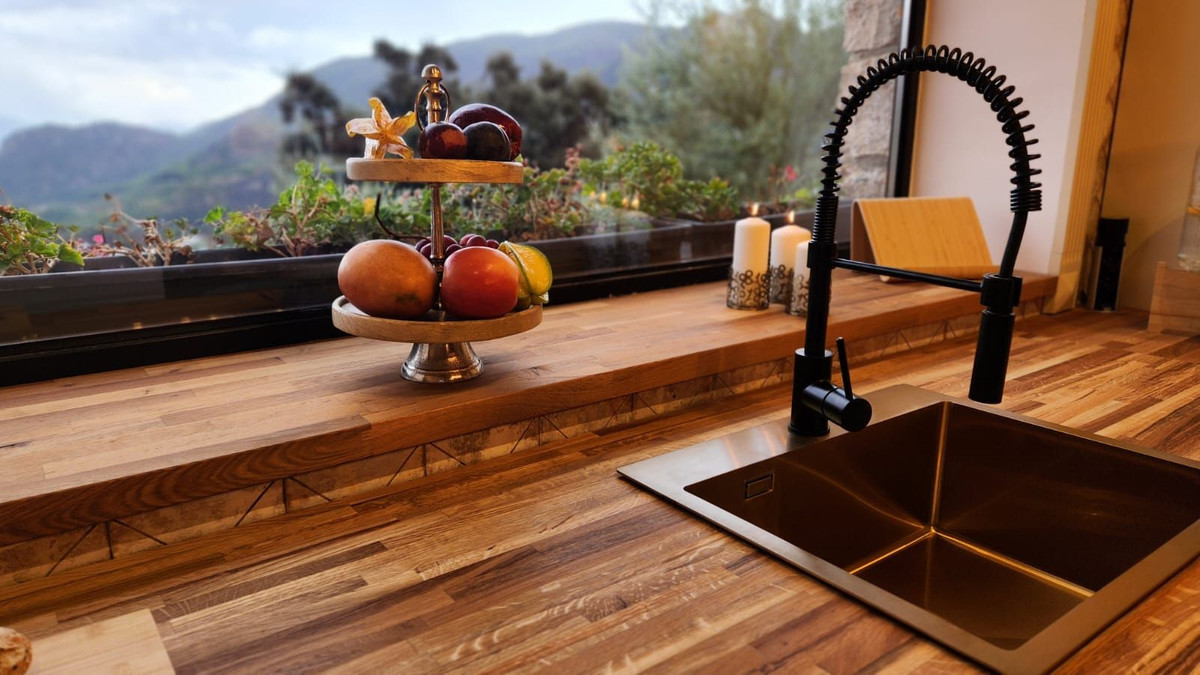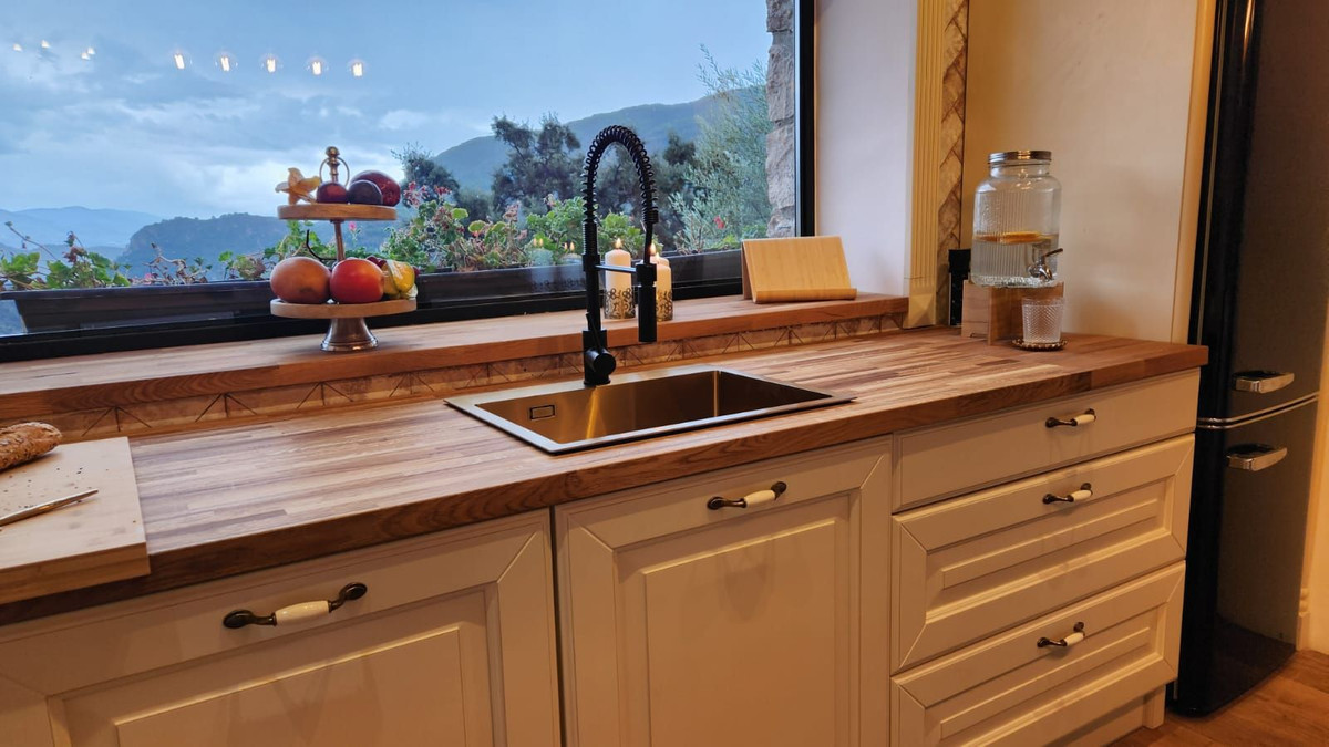 High-quality finishes, including oak floors, handcrafted tiles, and custom furniture.
