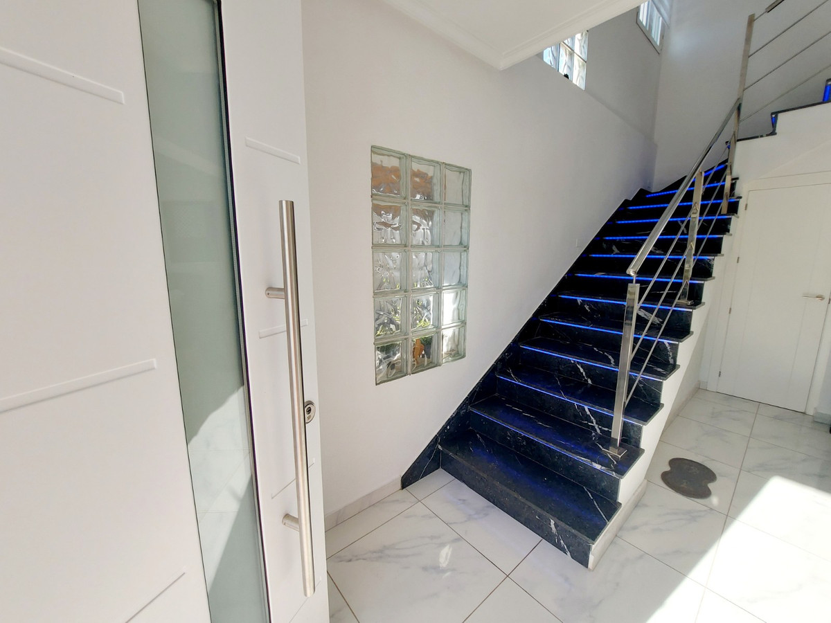 Step inside to find a spacious lounge with terrace access, offering breathtaking pool views. The modern kitchen is complemented by a sunroom and utility room, ensuring both style and functionality. With five double bedrooms, including a ground-floor option, this home provides ample space for family and guests. The master suite features a private balcony and walk-in wardrobe, while additional bedrooms are located on the first floor.