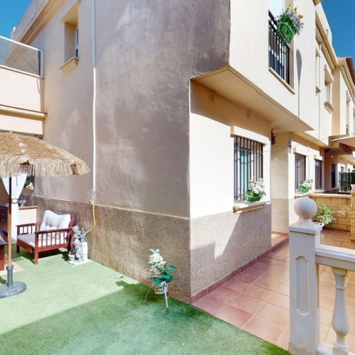 The best property on the complex with great outside space. The accommodation is on 3 floors. Ground Floor; entrance hall, WC, kitchen and lounge/dining room with glass doors to the terrace with a dining area and plenty of space for sunbathing and relaxing. First Floor: master bedroom with en-suite bathroom, 2nd bedroom & family bathroom. Second Floor: 3rd bedroom & spacious terrace.