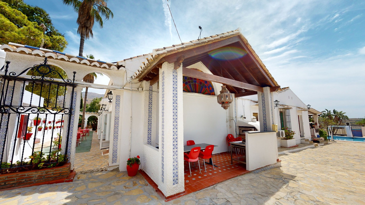 Unik finca i umiddelbar nærhed af havet - turistudlejning og privat ophold, alt er muligt her. De er blevet sjældne, de sande, autentiske og unikke fincaer på Costa del Sol simpelthen på grund af deres imponerende størrelse og de deraf følgende næsten ubegrænsede muligheder. Men de eksisterer stadig, som de gør her, mellem Velez-Malaga og Arenas, i hjertet af Axarquia ... og alligevel kun få minutters kørsel fra havet. En ideel ejendom, der udelukkende markedsføres af Casa & Terreno til både privatpersoner og investorer: hvad enten det er et landhotel, bed & breakfast eller hestefarm. Denne statelige ejendom kan nås via en kort betonvej, væk fra stress og trafik. På 35.000 kvadratmeter jord har vi et bygget areal på 1.500 m2, 13 komplette studios, 2 separate lejligheder og hestestalde - en unik i det sydlige Spanien. Der er flere bygninger på stedet. Det samlede areal af de brugbare boliger udgør ca. 920 m2. Derudover er der omkring 340 m2 lagerplads, sauna og pools. Andre højdepunkter i fincaen, som kun ligger 40 minutter fra Malaga lufthavn, er en stor pool på ca. 8x15 meter med tilstødende jacuzzi og en stor grillplads, en anden pool på ca. 3x8 meter og panoramaudsigt over Middelhavet, et fuldt udstyret kommercielt køkken, et fuldt udstyret barområde og privat parkering til mere end 30 køretøjer.   Alt klar til brug! Ejendommen har en fantastisk sydlig orientering og derfor sol hele dagen, og den fantastiske havudsigt kan nydes fra hele fincaen. Det tager kun 15 minutter at komme til stranden.   Lejlighederne ligger i den øverste del af fincaen og kan bruges kommercielt eller privat, der er også en anden pool. Ejendommen vil være