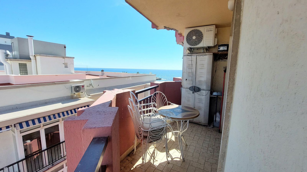 Front line beach flat in the heart of Fuengirola with sea and mountain views. Its excellent location allows you to enjoy all the services and shops within walking distance. The flat has a functional and bright design. It has an open plan kitchen integrated in the living-dining room, which gives direct access to a large terrace ideal to enjoy the Mediterranean climate all year round. The master bedroom includes a built-in wardrobe and also has access to the terrace, which provides great luminosity and a feeling of spaciousness. A bathroom with bathtub. large terrace with breathtaking views, perfect for relaxing or sharing moments outdoors. Ideal as a holiday home, investment with high rental demand, or as a home by the sea.