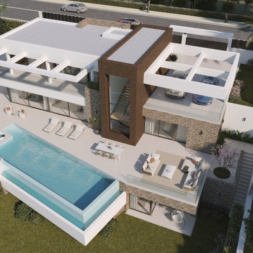 Beliggende i et prestigefyldt område tilbyder dette eksklusive villaprojekt den perfekte blanding af moderne elegance og middelhavscharm. Beliggende på en sydøstvendt grund er ejendommen designet til at maksimere naturligt lys og en betagende kystudsigt.