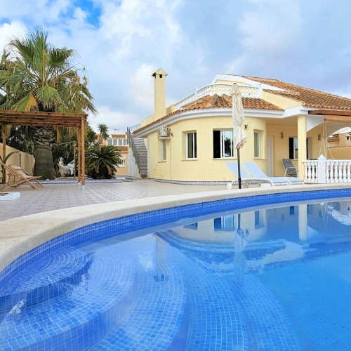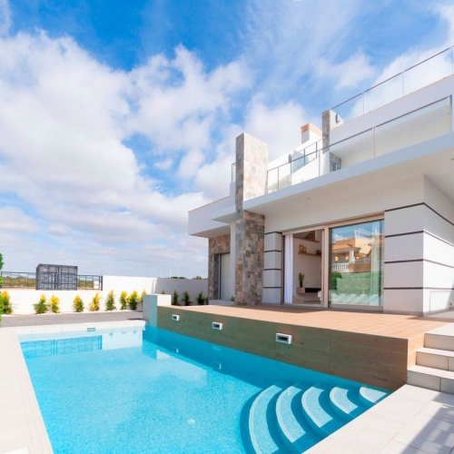 Looking to buy a fully finished villa in Santa Rosalia Lake and Life Resort? The Sakura Villa offers an exceptional opportunity to own a ready-to-move-in home in one of Spain's most sought-after residential resorts.. . Key Features:. • Prime Location: Situated in Santa Rosalia Lake and Life Resort, a prestigious gated community in Torre Pacheco, Murcia.. • Turnkey Ready: 3 bedrooms, 3 bathrooms villa is fully finished with all appliances installed . . Modern Amenities and Full Equipment. The villa is fully equipped with all necessary appliances, making it completely move-in ready. This includes a complete set of high-end Bosch appliances in the kitchen: refrigerator, oven, microwave, dishwasher, and a modern extractor hood. Additionally, the property features:. • Climate Control:. Fully installed air-conditioning system for year-round comfort.. • Energy Efficiency:. Solar panels for sustainable energy. LED lighting throughout the villa, both indoors and outdoors.. • Bathroom Features:. Underfloor heating in bathrooms for added luxury.. Complete with shower screens, mirrors, and full accessories.. • Additional Appliances:. Washing machine and water heater fully installed.. Every aspect of the villa has been thoughtfully designed to provide a modern, comfortable, and energy-efficient living experience.. . Garden and Outdoor Space:. • Landscaped garden surrounding the villa.. • Private parking space at the front of the property.. • Space for customization (seating areas, landscaping, etc.) and spacious terraces perfect for relaxation. . Property Details. • Type: Detached villa (2 levels).. • Plot Size: 235.58 m².. • Built Area: 122.27 m² across 2 floors.. • Useful Surface Area: 105.88 m².. . Layout:. • Ground Floor: Open-plan living room, dining area, modern kitchen, 2 bedrooms, 2 bathrooms, laundry room, covered porch, and rear terrace.. • First Floor: Master bedroom with en-suite bathroom, walk-in wardrobe, and access to a large private terrace.. • Internal staircase connects both floors.. . Condition and Legal Status:. • Ready for immediate occupancy.. • Free of occupants or tenants.. . Investment Potential:. • Excellent opportunity for rental income or capital growth due to increasing demand in the area.. . Competitive Price: €449,000 (IVA not included). Add a furniture package, and the villa is completely ready for immediate living or rental investment.. . Contact us for more information or to arrange a personal or virtual viewing. Don't miss this exceptional opportunity to own a stunning villa in one of the best residential resorts in Spain!