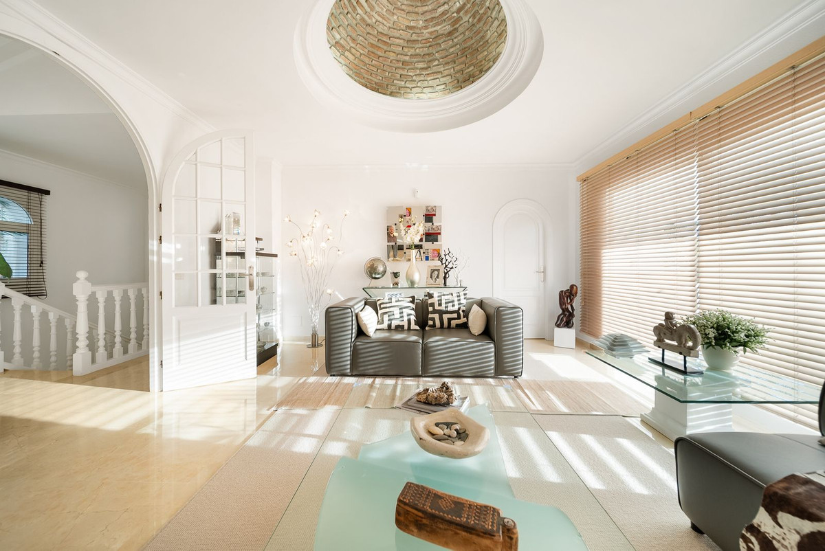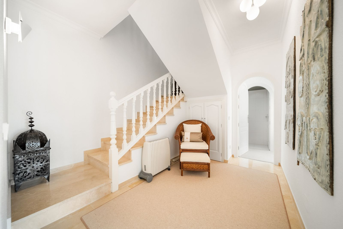 Discover this stunning detached villa, nestled in the most sought-after street of El Chaparral, just a 5 minute drive from the bustling La Cala de Mijas. Boasting a prime front line golf location, this exquisite home offers a perfect blend of elegance and comfort. Spread across two levels, the villa features four spacious bedrooms, including a master suite with an ensuite bathroom, and three additional double bedrooms and three bathrooms on the ground level. There is an additional benefit of underfloor heating in the bathrooms and solar panels for heating water at the property.