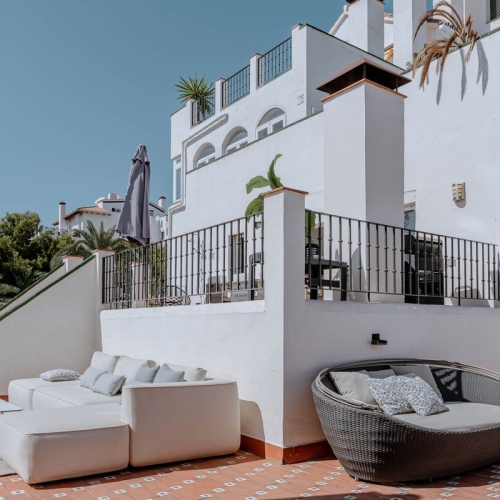 Imponerende tre værelses sydvendt duplex penthouse i den prestigefyldte og gated stranden Menara Beach, Estepona. Dette eftertragtede kompleks har velplejede tropiske haver, udendørs fælles swimmingpool, indendørs opvarmet swimmingpool og gymnasium samt blot ti minutters kørsel til Puerto Banus og en kort køretur til butikker, restauranter og alle faciliteter. Ejendommen har en åben plan stue og spiseplads med terrassedøre, der fører til to private terrasser med smuk havudsigt; fuldt udstyret køkken med separat vaskeri område; gæstesuite med adgang til terrassen; gæsteværelse; og et gæsteværelse. Det øverste niveau fører til den imponerende master suite med hvælvede lofter og en privat terrasse; på dette niveau er der en ekstra stor terrasse med grillområde og fantastisk udsigt over samfundet og havet. Andre funktioner omfatter indbyggede garderobeskabe overalt, marmorgulve, varm og kold aircondition, gulvvarme i badeværelserne, privat parkering og butiksrum.