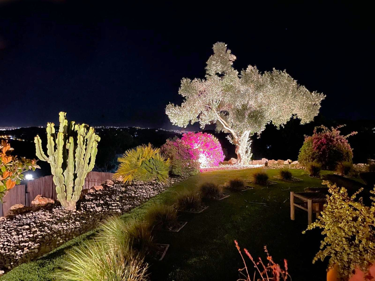 The basement level accessible via inner staircase and also separate entrance, accommodates a comfortable second sitting room of almost 50m2, and can be used as home cinema, office, fitness room, game room or guest/staff accommodation. The villa's outdoor areas are equally impressive, featuring a beautiful heated swimming pool, a tropical gazebo perfect for al fresco dining, and outstanding sea views. Additionally, there is a pétanque court and a variety of fruit trees, complemented by a beautifully landscaped stone garden with olive and cork oak trees.