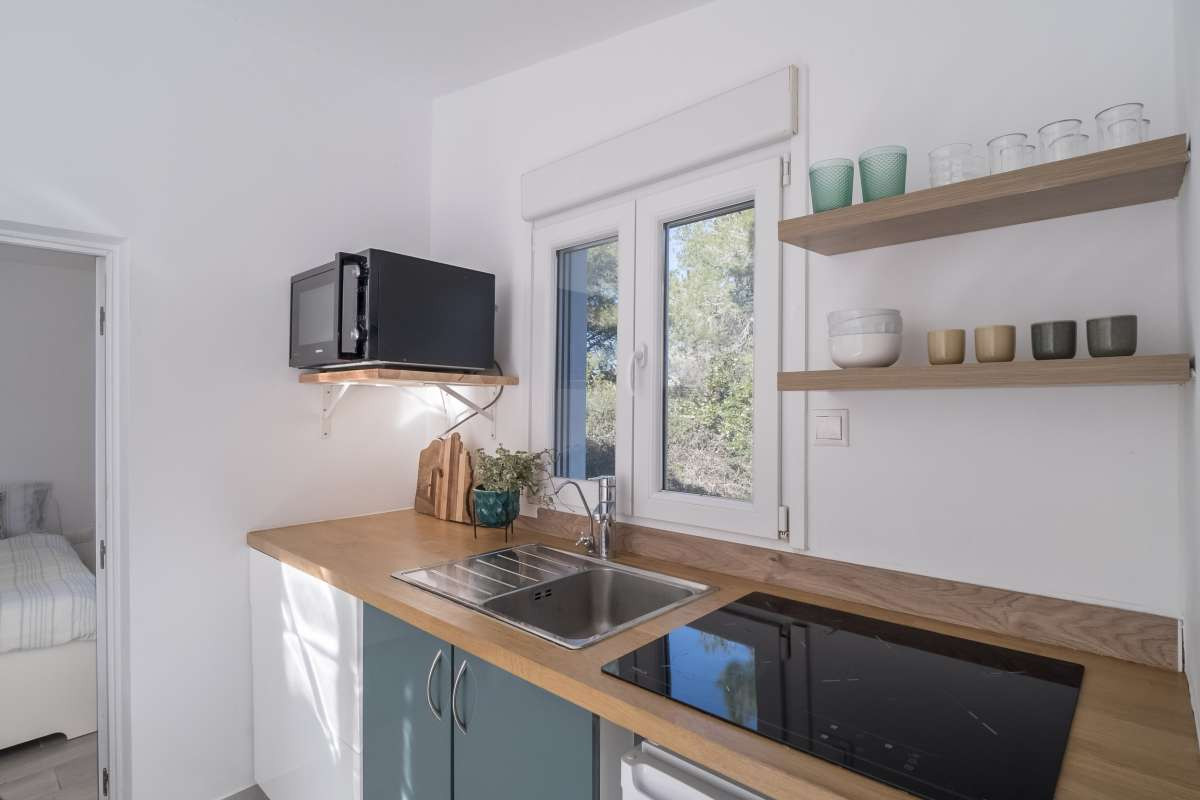 The villa's outdoor area is designed for both relaxation and activity. The 5 x 10-meter pool is complemented by a summer kitchen and BBQ area, making it ideal for entertaining. The tranquil garden is filled with fruit trees and features an irrigation system for the upper section. The entire outdoor space is private and not overlooked, providing a peaceful retreat.