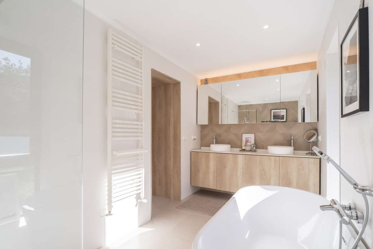 The villa boasts 8 bedrooms and 4 bathrooms, thoughtfully distributed across two separate apartments and a charming guest cottage. The total living space spans 493 m², set on a spacious plot of 3,101 m². The upper apartment was fully renovated in 2023 and has 4 bedrooms, while the lower apartment and guest cottage have also been recently updated. An additional space that is around 1.75 meters in height in the attic area is currently undeveloped but could be easily converted into an additional bedroom or office.