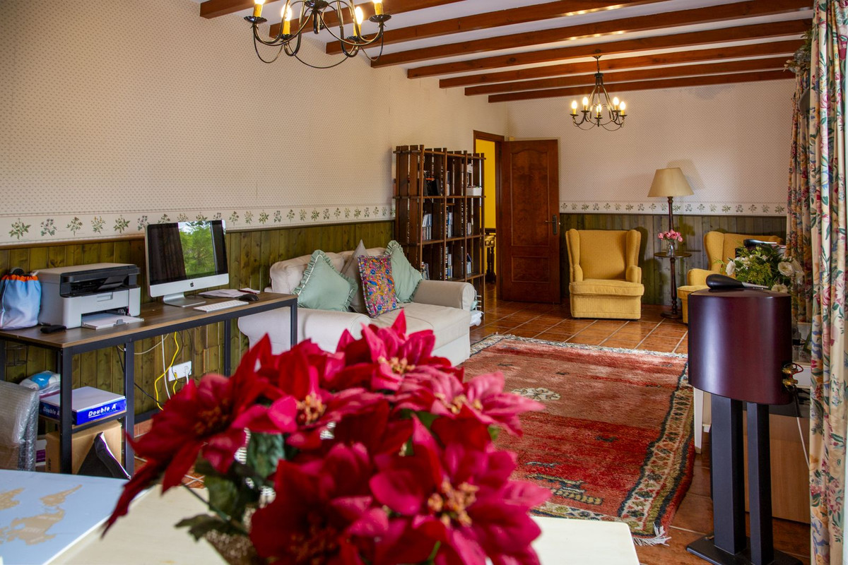 Villa with 6 bedrooms with 4 bathrooms and toilet. The property consists of 575 m2 built, as well as charming outdoor spaces, such as porches, terraces, patios totalling 144 square metres, and gardens throughout the property to enjoy different sensations, environments and views. The property is situated on a plot of 10.000 m2, where there are, apart from the house, wide spaces to enjoy different activities: the swimming pool area of 12 metres long, surrounded by a large bermudagrass lawn, to swim, sunbathe and relax or practice some sport on the high quality tennis court with night lighting . A building of 85 m2 independent of the house, formerly used as stables, is now converted into an office and workshop equipped with all the machinery and tools necessary for the maintenance of the estate. This building, if desired, could easily be converted into a guest or staff house.
