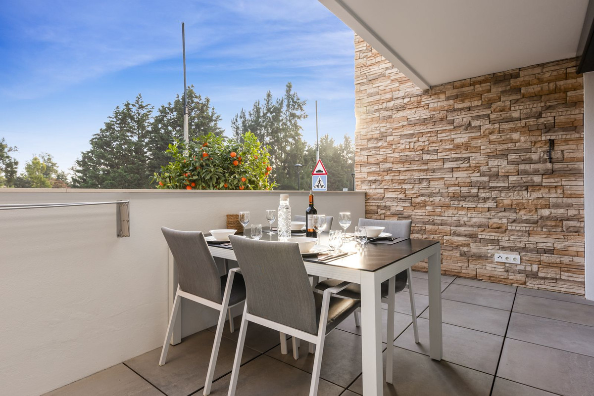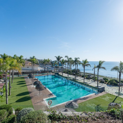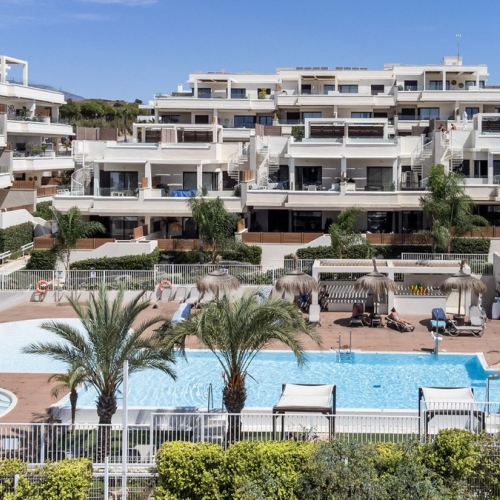 Spacious and sunny elevated ground floor corner apartment. With an ideal south and east orientation you are first line to the La Noria golf course and a flat, easy walk into La Cala town and beach. Completed in 2019, this was the show home for the development and was designed and furnished to a very high standard. The property is in amazing condition, with little use and additional improvements/ upgrades made by the current owners.