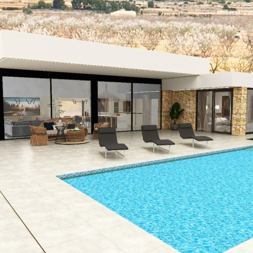 Pool: Custom size pool with surrounding paved area (50 m²), finished with non-slip ceramic tiles.
