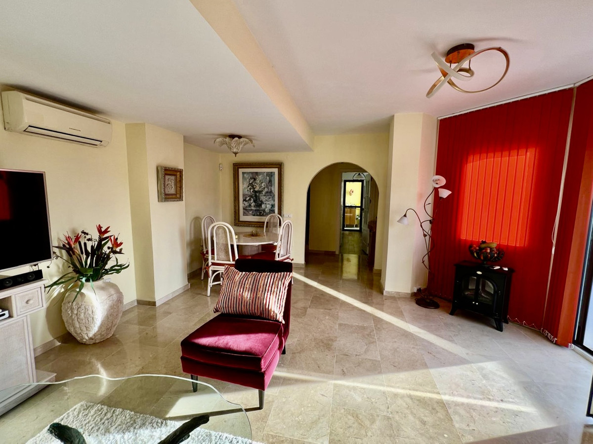 The interior of the penthouse is thoughtfully designed to maximise both functionality and style. Air conditioning and a charming fireplace ensure year-round comfort, while the inclusion of a guest toilet adds an extra layer of practicality. The bedrooms are equipped with fitted wardrobes, offering ample storage space, and the property's layout is enhanced by a solarium and multiple terraces, both covered and uncovered, that provide seamless indoor-outdoor living. The addition of a balcony further accentuates the property's appeal, offering a private space to enjoy the surrounding vistas.