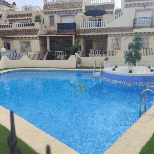 Dette dobbelthus ligger i Orihuela Costa og tilbyder et komfortabelt og bekvemt opholdsrum. Med to soveværelser og to badeværelser giver det et funktionelt layout på tværs af 77,94 kvadratmeter bebygget område. Derudover er der mulighed for at skabe et tredje soveværelse , hvilket tilføjer rummet endnu mere fleksibilitet. Huset fremstår generelt i god stand og er orienteret mod øst, hvilket sikrer masser af naturligt lys hele dagen.
