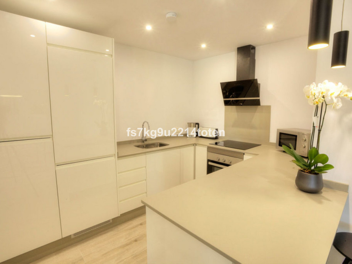 High quality finishing’s include; an attractively tiled bathroom and shower room. An open plan kitchen with a scratch and stain resistant ‘Compac’ countertop, with the fridge/freezer and washing machine integrated within the cupboards.  A Ceramic hob, cooker hood & microwave. Air conditioning, double glazing, mirrored wardrobes to bedrooms with high quality sanitary ware and fittings throughout.
