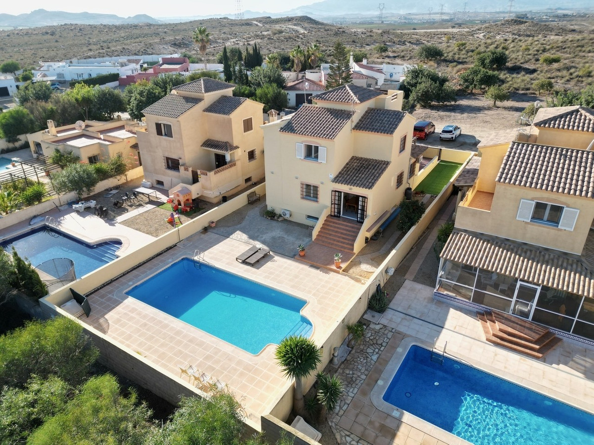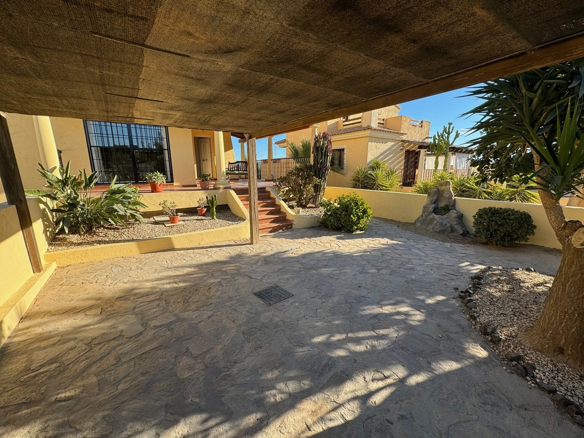 In summary, this lovely independent villa in La Algarrobina is a quintessential Spanish retreat. With its five bedrooms, three bathrooms, a spacious underbuild, and a private pool, it offers the perfect blend of comfort and convenience. The serene location, yet easy access to Vera and the coast, make it an ideal choice for those seeking a peaceful escape with a touch of luxury. The underground garage, well-appointed kitchen, and rooftop solarium add to the property's appeal, and the proximity to Desert Springs golf course is a bonus for golf aficionados.