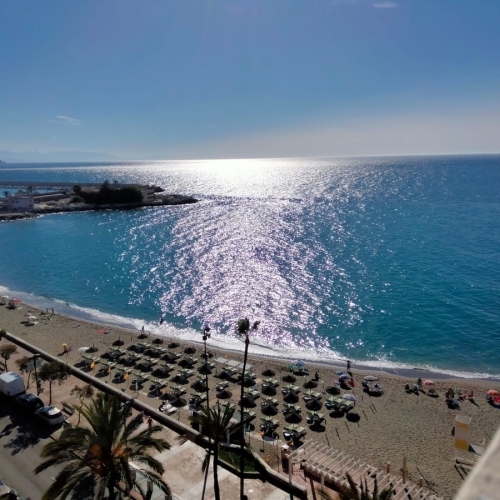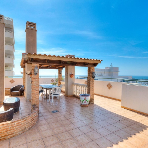 Luxury west facing penthouse, located in the exclusive urbanization of Higuerón West. Consists of entrance, hall way, spacious living-dining room with floor to ceiling glass sliding doors leading out to a large wrap around terrace of 158m2, with views of the mountains, gardens and partial sea views. Open plan kitchen fully furnished and equipped with electrical appliances from Bosch and laundry area with washing machine/dryer. Main bedroom with ensuite bathroom and walk-in closet, 2 extra bedrooms with built-in wardrobes and guest bathroom. There is also a backside terrace of 15m2 with access from the living room. Air conditioning hot and cold by Airzone, video intercom, domotic system, pre-installation alarm system, floor heating in both bathrooms. Includes two parking spaces and one storage room.