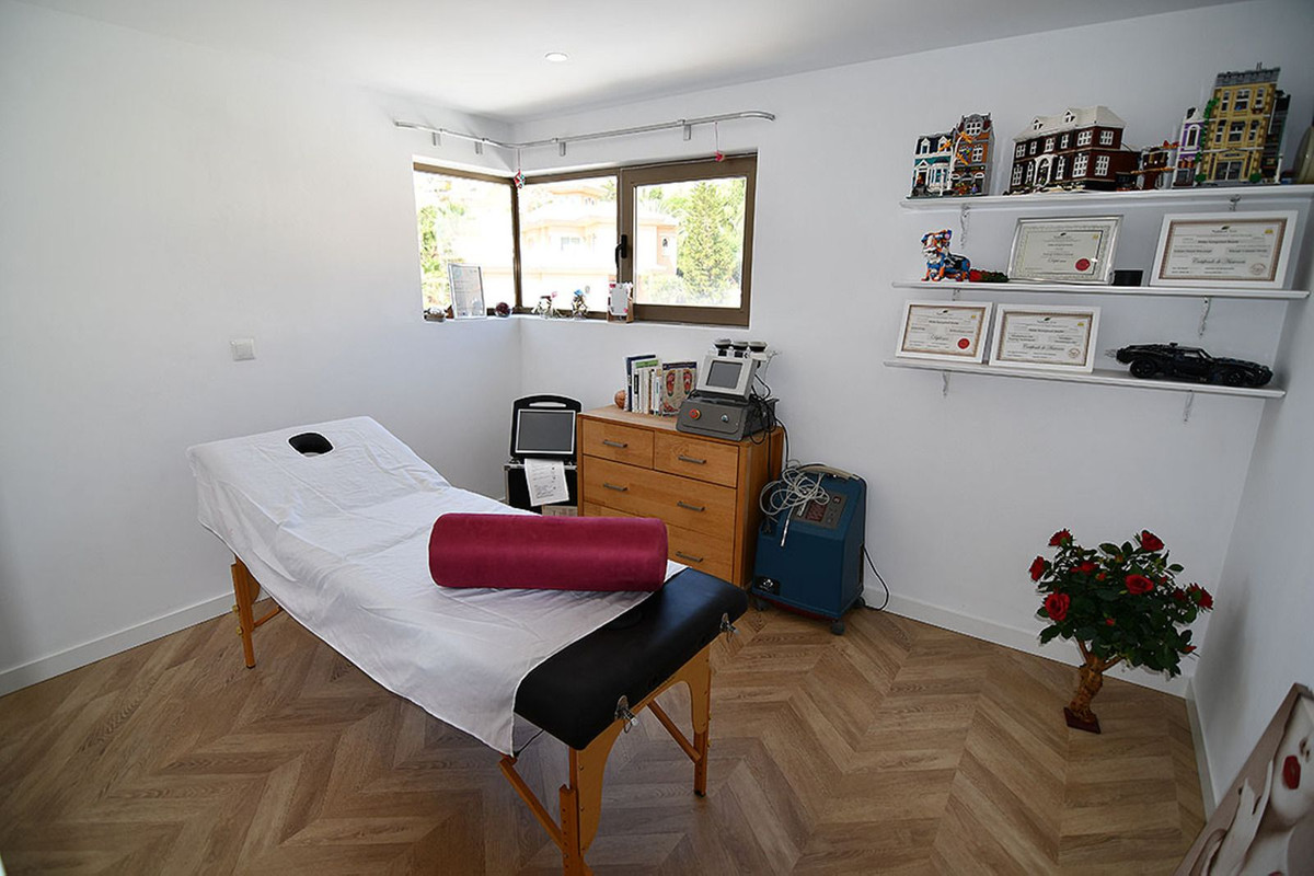 In addition, the villa offers a double garage with storage area, security system with installed alarm, fiber optic internet and hot water using solar energy.