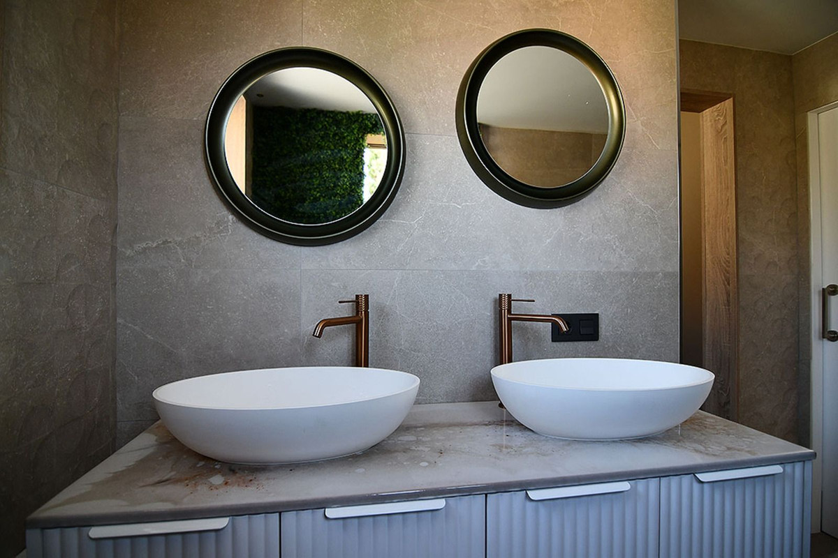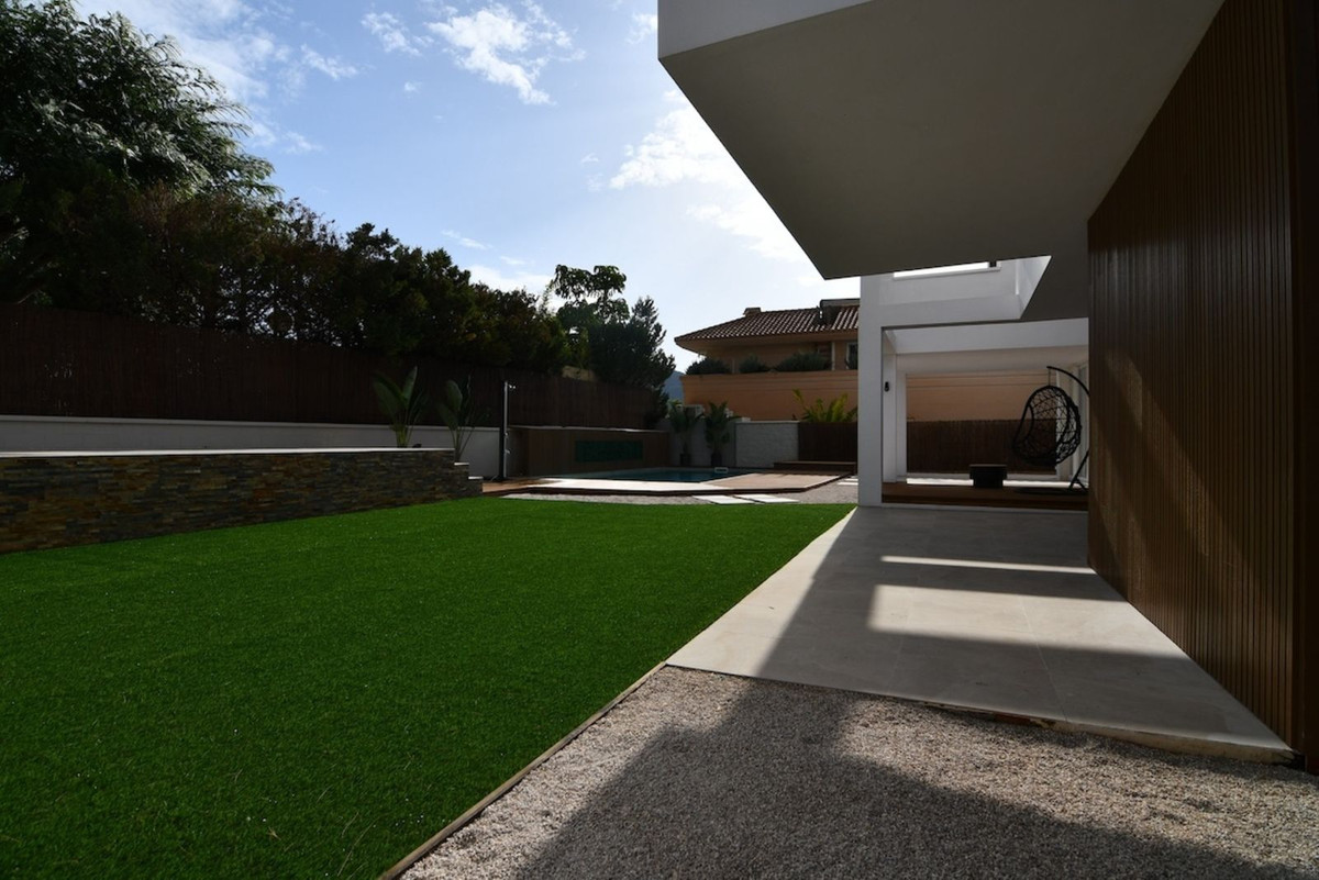 The house has been designed to guarantee privacy and comfort in a modern and elegant environment. Inside, there is a large living area of 65 m², which integrates a modern and cozy kitchen with a built-in library and a spacious dining room. It has 6 bedrooms, all with built-in wardrobes, and 4 beautiful bathrooms, 2 of them en suite.