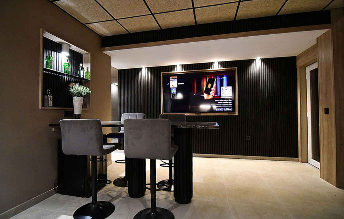 For moments of leisure and entertainment, the villa has its own cinema and bar, as well as an outdoor kitchen perfect for enjoying the summer.