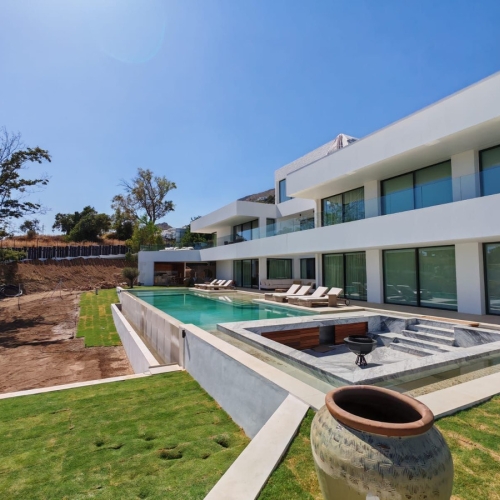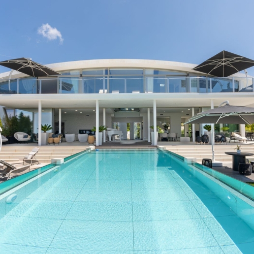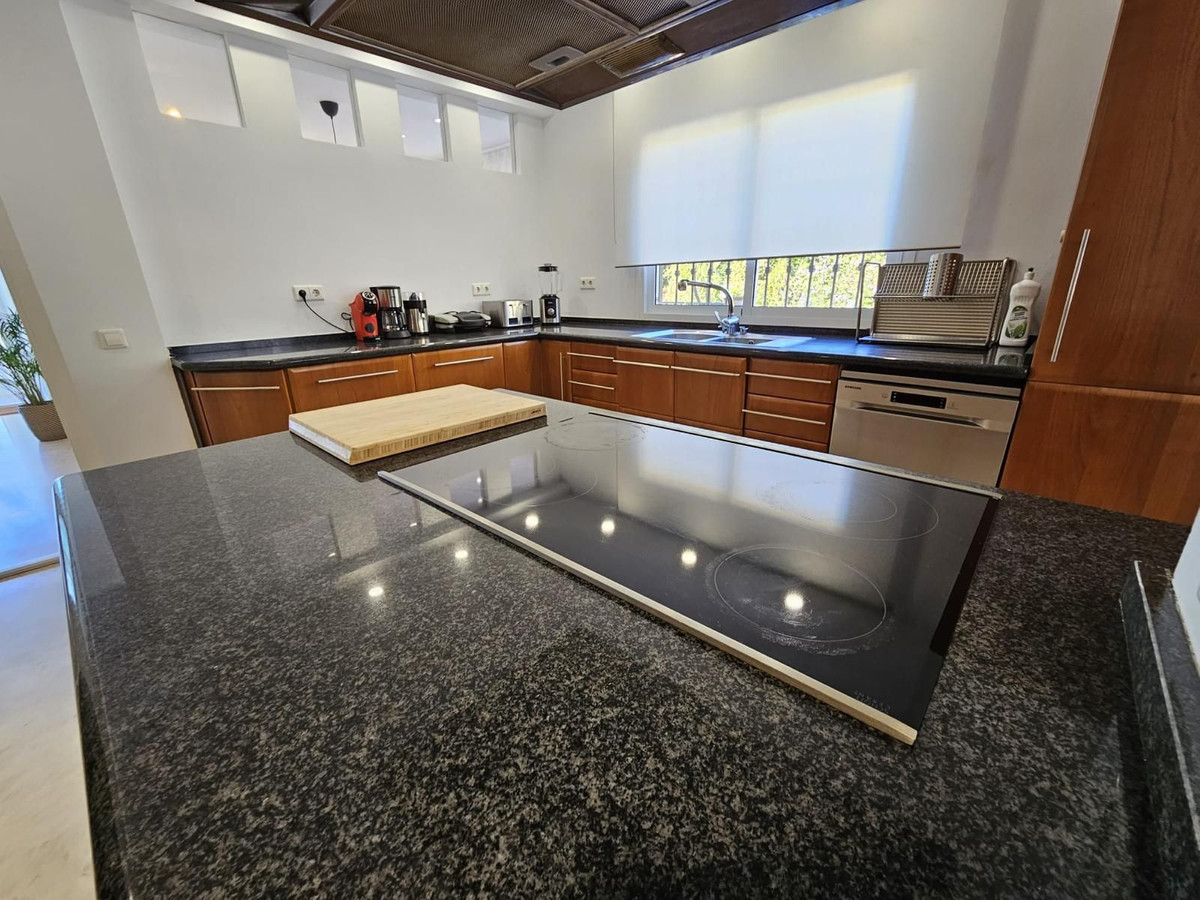 With 1091 square meters, this plot is the perfect canvas for the beautiful home that rises above it. The home itself is a masterpiece of design and comfort, it is distributed over two levels and consists of a spacious entrance hall, five bedrooms each with its own bathroom, a large living-dining room with a terrace from which you have beautiful views of the sea and the garden and finally a magnificent fully equipped main kitchen and a second kitchen.