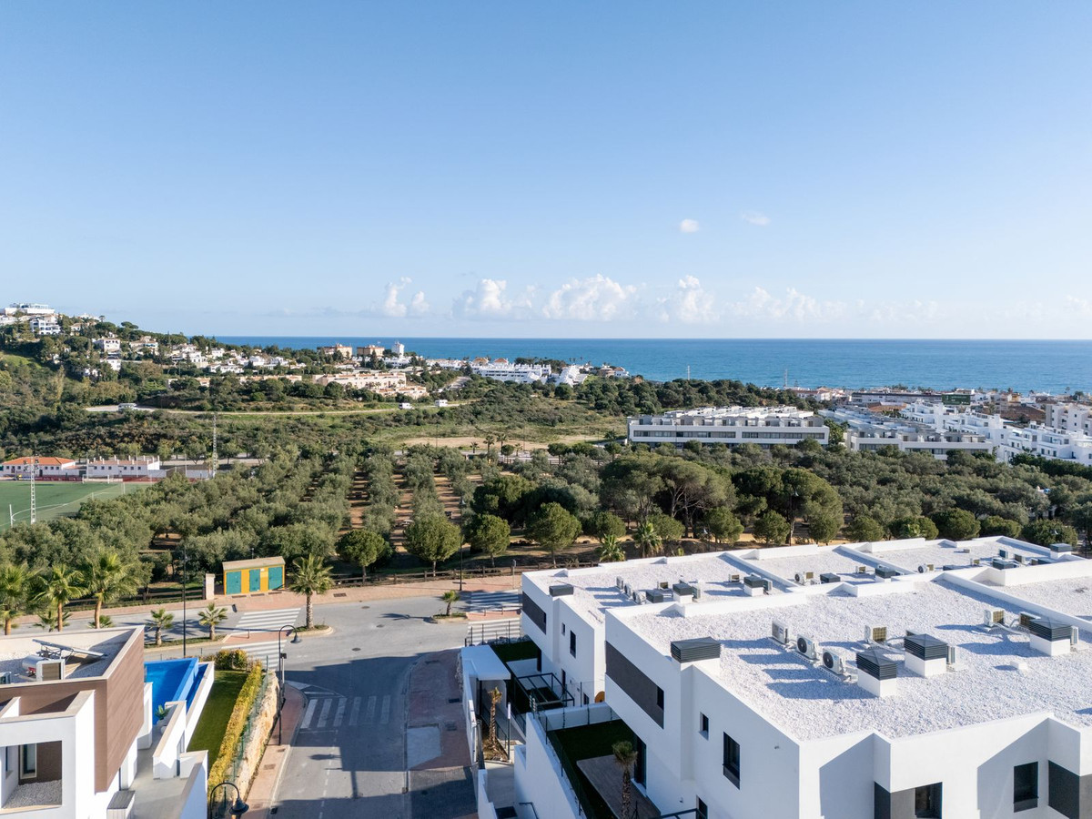 Welcome to this exceptional 4-bedroom, 3-bathroom corner townhouse in Serena Village, one of the most sought-after gated urbanizations in the heart of La Cala de Mijas. Recently completed, this development offers an unrivaled blend of cutting-edge design, top-tier materials, and luxury finishes. Situated on the higher levels of the urbanization, this home enjoys panoramic sea views from every level, culminating in an expansive rooftop solarium where you can soak in the vistas while basking in the sun.