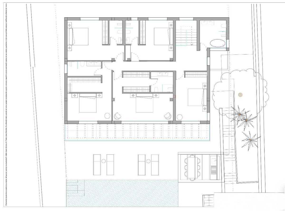 Spanning an impressive built area of 621m² on a 708m² plot the villa features seven spacious bedrooms and nine elegantly designed bathrooms. The interior space of 409m² is complemented by 212m² of terraces providing ample room for relaxation and entertainment. The villa is thoughtfully designed with modern amenities including air conditioning, ensuring comfort throughout the year. The basement is a versatile space, illuminated by light wells, and includes an additional bedroom and bathroom. It also features a bar area, a pool table, and a cinema area, offering endless possibilities for customisation to suit your lifestyle.