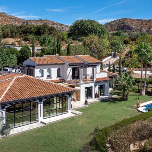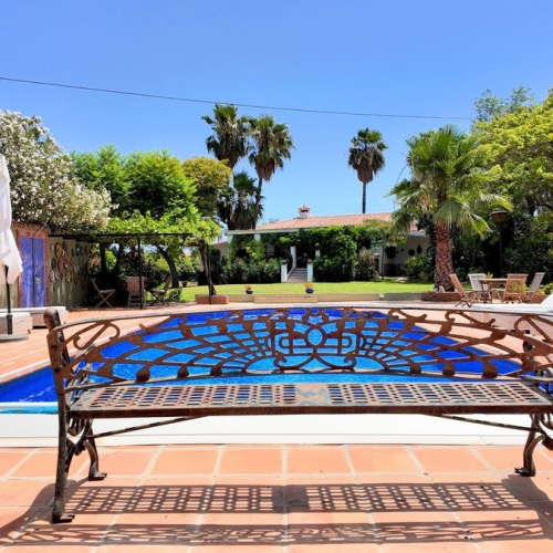 The property has three spacious bedrooms, each with its own full bathroom, plus an additional room housing a laundry room and a sauna. The jewel of this estate is its 20 metre x 5 metre swimming pool, surrounded by palm trees and with breathtaking views of the mountains. For exercise enthusiasts or those looking to relax outdoors, the dojo in the garden is the perfect place.