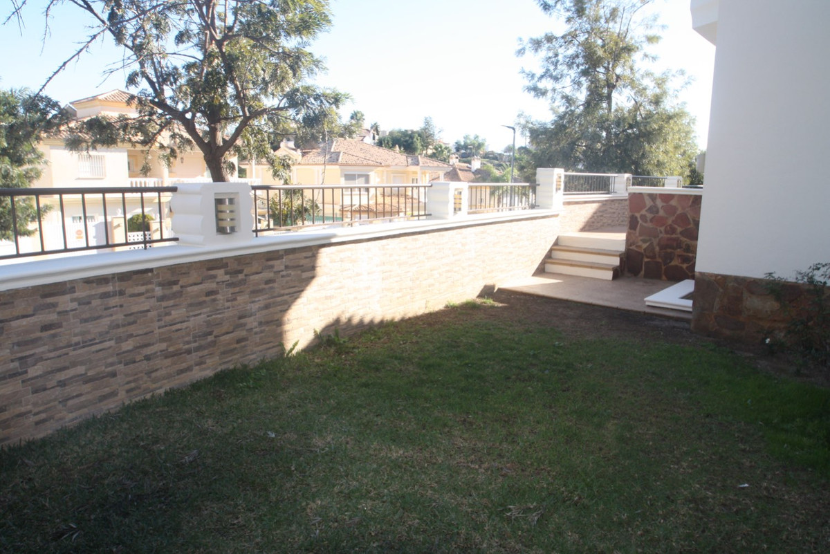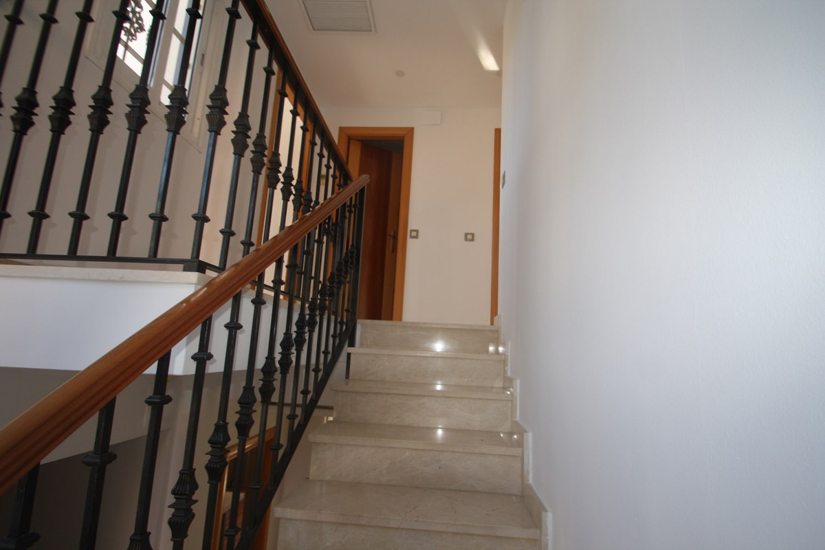 The second floor features the master bedroom with an en-suite bathroom and walk-in closet, along with two additional bedrooms and another bathroom with a shower. The basement is a versatile space with a multipurpose room, two additional rooms, a bathroom, and a large garage. Additionally, the 45 m² solarium is the ideal spot to enjoy the Mediterranean climate.