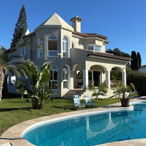 On the first floor has a large living room, a library office that can be converted into a bedroom, bathroom, fully equipped kitchen. On the second floor the house has 3 bedrooms and two bathrooms and finally we have a living room, which gives access to the terrace which has a great jacuzzi with incredible views of the sea. Modern heated pool in the garden and garage por multiple cars. The villa has pre-installation of elevator, alarm and automatic locks at both entrances to the property.