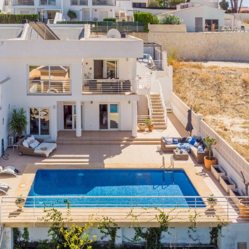 This property offers you a unique opportunity to become the owner of an impressive villa with panoramic views rarely found. During the day, enjoy the breathtaking views of the azure blue Mediterranean Sea and the charming coastal town of Calpe, while at night, the sparkling lights create an enchanting setting. The owners have decorated the villa with great attention to detail, with a modern and stylish design taking center stage. This villa with a heated private pool is ideal for families seeking space, comfort, and luxury.