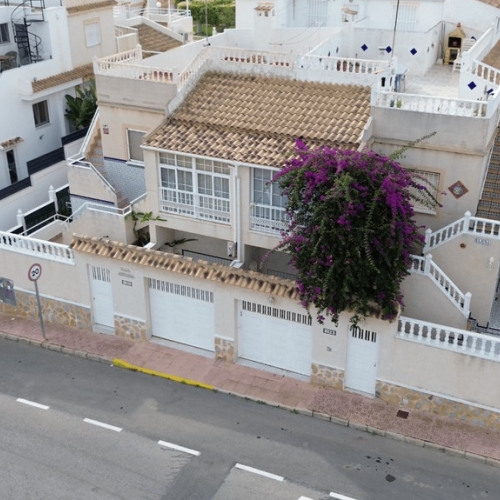 South facing charning quad. Very luminous in every room. 3 double bedrooms, living-dining room, independent kitchen with annexed interior patio, 2 complete bathrooms, porch and fantastic terrace-solarium and parking area.. . In the outside area on the ground floor there is access to park the car and a large porch. . On entering we find a spacious living-dining room from which we access to the independent kitchen, also quite spacious and with an interior patio, ideal as a pantry or laundry area. Also on the ground floor there are 2 double bedrooms and a complete bathroom.. Upstairs there is another large double bedroom, 1 complete bathroom and access to the terrace-solarium.. . Sold furnished and freshly painted inside.. . The property is in a cul-de-sac residential street, very quiet. . . Located in the Urbanization Mirador de Los Balcones, with communal pool, well maintained and very quiet and with a high number of residents all year round. Surrounded by parks and all necessary services: supermarkets, bars, restaurants, hospital, pharmacies.. . Just over 2 kilometres from the sea. Don't miss the opportunity to buy a spacious house to live all year round, for your holidays or as an investment.