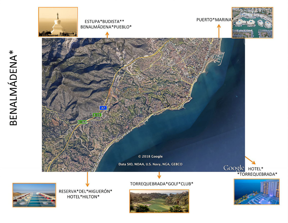 It is a privileged location, a stone's throw from the famous Torrequebrada golf course, designed by the renowned José Gancedo, and just a few minutes from the beautiful sandy beaches of the Costa del Sol (1,2km to be exact) From the prestigious Torrequebrada area you can find in the center of Benalmádena Costa, 8 minutes by car, 20 minutes from Malaga airport and 25 minutes from the center of Marbella.