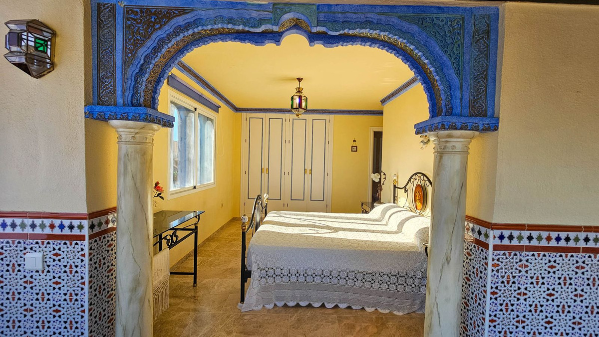 Smukt hjørne rækkehus med 4 soveværelser, 3 badeværelser og toilet; med privat ydre og glaserede terrasser i Marina de Casares, tæt på den smukke blå flag sandstrand og mange butikker, barer og restauranter. Ejendommen kan prale af den reneste andalusiske stil med marmorgulve, typiske fliser og arabeske detaljer. Det er fordelt på to niveauer med panoramaudsigt over havet. I stueetagen finder vi en stor stue med pejs, et gæstetoilet, et stort selvstændigt køkken med spiseplads og et vaskerum. Og vigtigst af alt, adgang til en kæmpe udendørs terrasse med et smukt springvand. Dette smukke udendørs rum er muret, hvilket giver det en fantastisk følelse af privatliv. Det perfekte sted at tilbringe hele dagen og slappe af. Der er direkte udgang til pool og fællesarealer, meget praktisk at komme frem og tilbage fra poolen til huset hele dagen. På øverste etage finder vi 4 soveværelser og 3 komplette badeværelser. Det store soveværelse har en-suite badeværelse med jacuzzi og en kæmpe terrasse med panoramaudsigt over havet og stranden. Alle soveværelser har indbyggede skabe og et af dem har desuden egen terrasse med sideudsigt over havet. Dette lille indhegnede område har smukke fællesarealer, haver og swimmingpool, samtidig med at de opretholder meget rimelige fællesgebyrer. Derudover har den udendørs parkeringspladser og kan købes valgfrit møbleret.