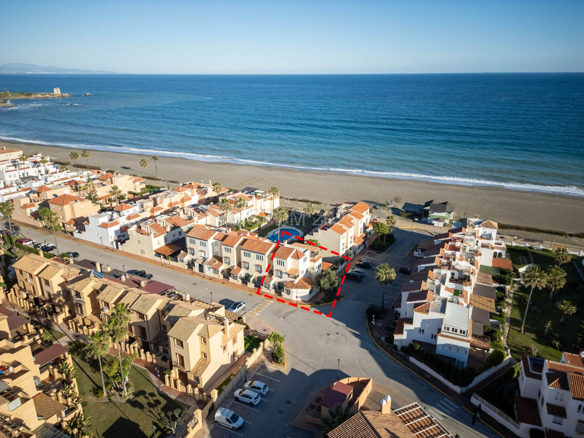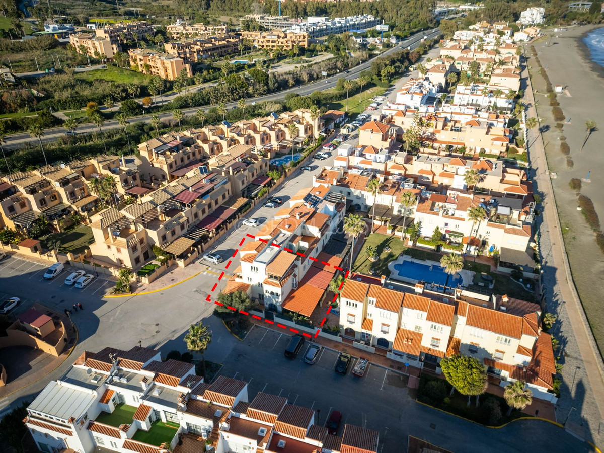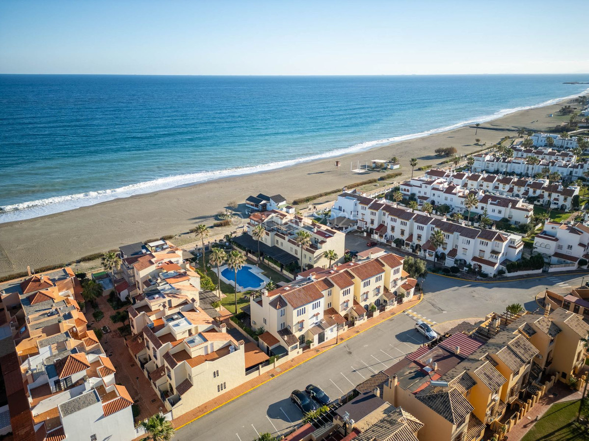 Denne pragtfulde ejendom er beliggende i en urbanisering ved stranden. Det har en ideel beliggenhed i et roligt område og alligevel kun få minutter fra byen Sabinillas med alle dens faciliteter. Rækkehuset er beliggende i en velholdt privat og rolig urbanisering med smukke haver og fælles pool. Ud over et kompleks af offentlige paddle-tennisbaner lige ved siden af. Urbaniseringen er beliggende i Marina de Casares, mellem Sabinillas og Estepona, med nem adgang til motorvejen, 5 minutters kørsel fra begge byer og det attraktive Puerto de la Duquesa, hvor der er alle slags butikker og underholdningssteder. Meget tæt på 3 forskellige strande med gode restauranter og en vidunderlig strandklub, en af dem en hundestrand, og meget tæt på det nye Estepona Hospital. Der er 5 golfbaner inden for 5 minutters kørsel, en af dem er den velkendte Finca Cortesin, meget prestigefyldt og hjemsted for Volvo Masters i nogle år.