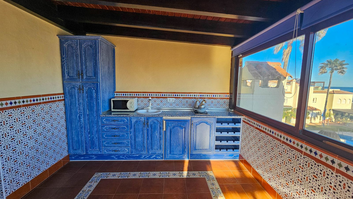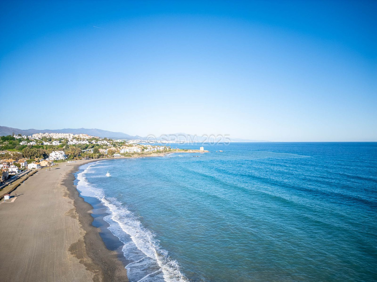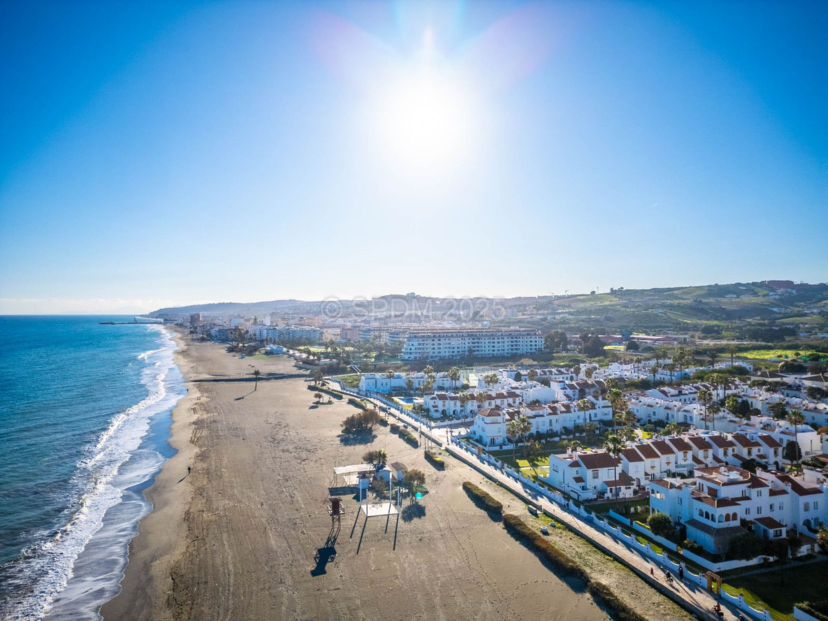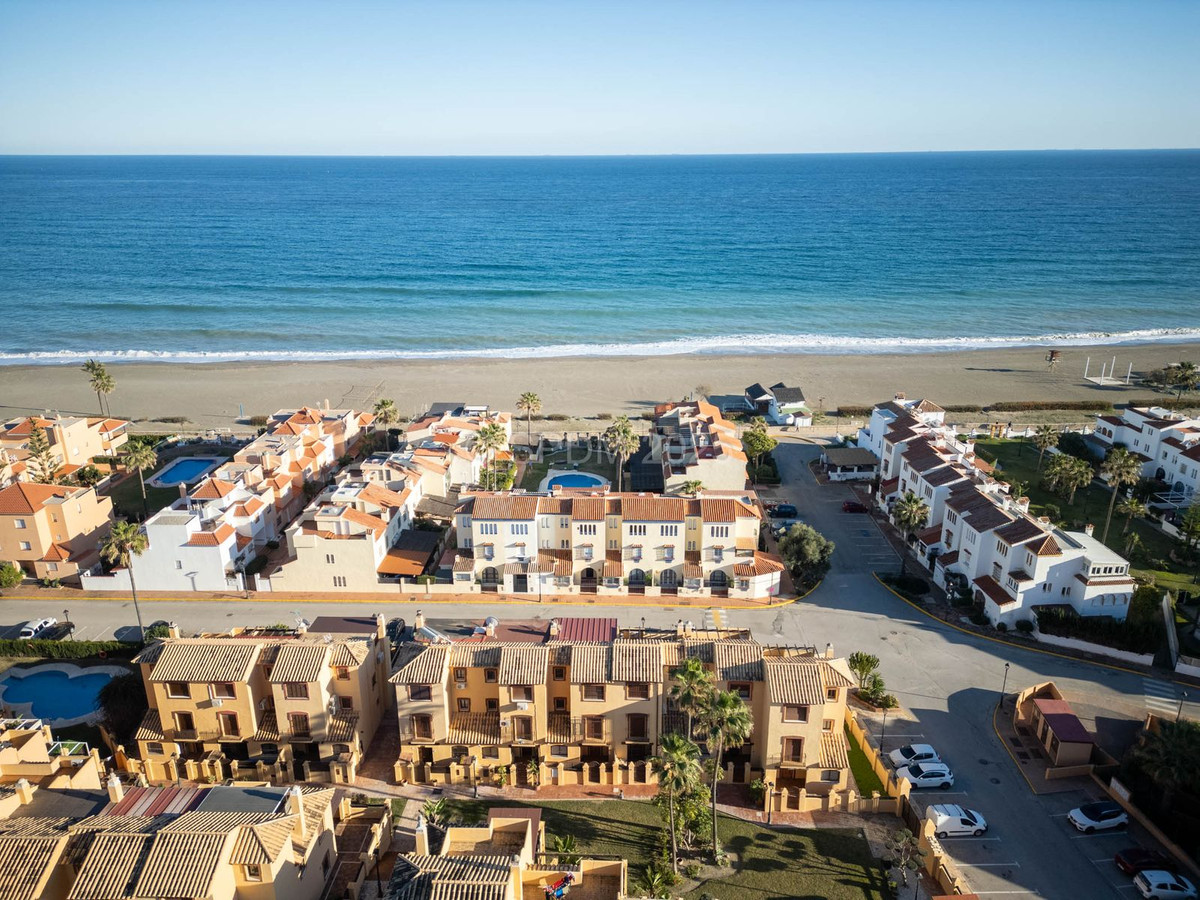 Denne pragtfulde ejendom er beliggende i en urbanisering ved stranden. Det har en ideel beliggenhed i et roligt område og alligevel kun få minutter fra byen Sabinillas med alle dens faciliteter. Rækkehuset er beliggende i en velholdt privat og rolig urbanisering med smukke haver og fælles pool. Ud over et kompleks af offentlige paddle-tennisbaner lige ved siden af. Urbaniseringen er beliggende i Marina de Casares, mellem Sabinillas og Estepona, med nem adgang til motorvejen, 5 minutters kørsel fra begge byer og det attraktive Puerto de la Duquesa, hvor der er alle slags butikker og underholdningssteder. Meget tæt på 3 forskellige strande med gode restauranter og en vidunderlig strandklub, en af dem en hundestrand, og meget tæt på det nye Estepona Hospital. Der er 5 golfbaner inden for 5 minutters kørsel, en af dem er den velkendte Finca Cortesin, meget prestigefyldt og hjemsted for Volvo Masters i nogle år.