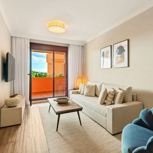 Meticulously renovated to the highest Scandinavian standards, this home features three generously sized bedrooms and two beautifully designed bathrooms. The interiors are flooded with natural light and decorated in calming, neutral tones that create an inviting atmosphere. The pièce de résistance is the spacious terrace, which comes complete with a cozy outdoor bathtub. From here, you can soak in panoramic views of the mountains, the shimmering sea, and the lush fairways of the surrounding golf course – the perfect setting for relaxation or entertaining.