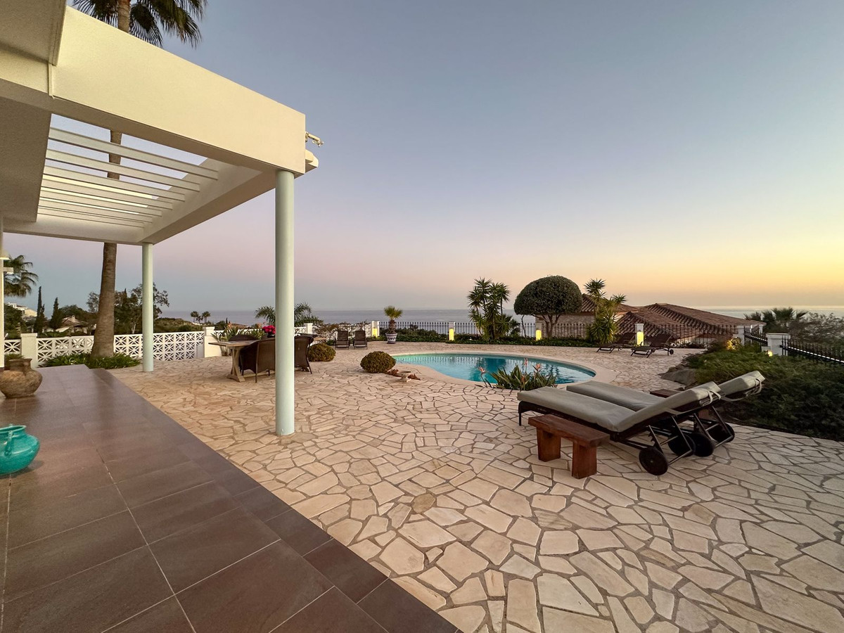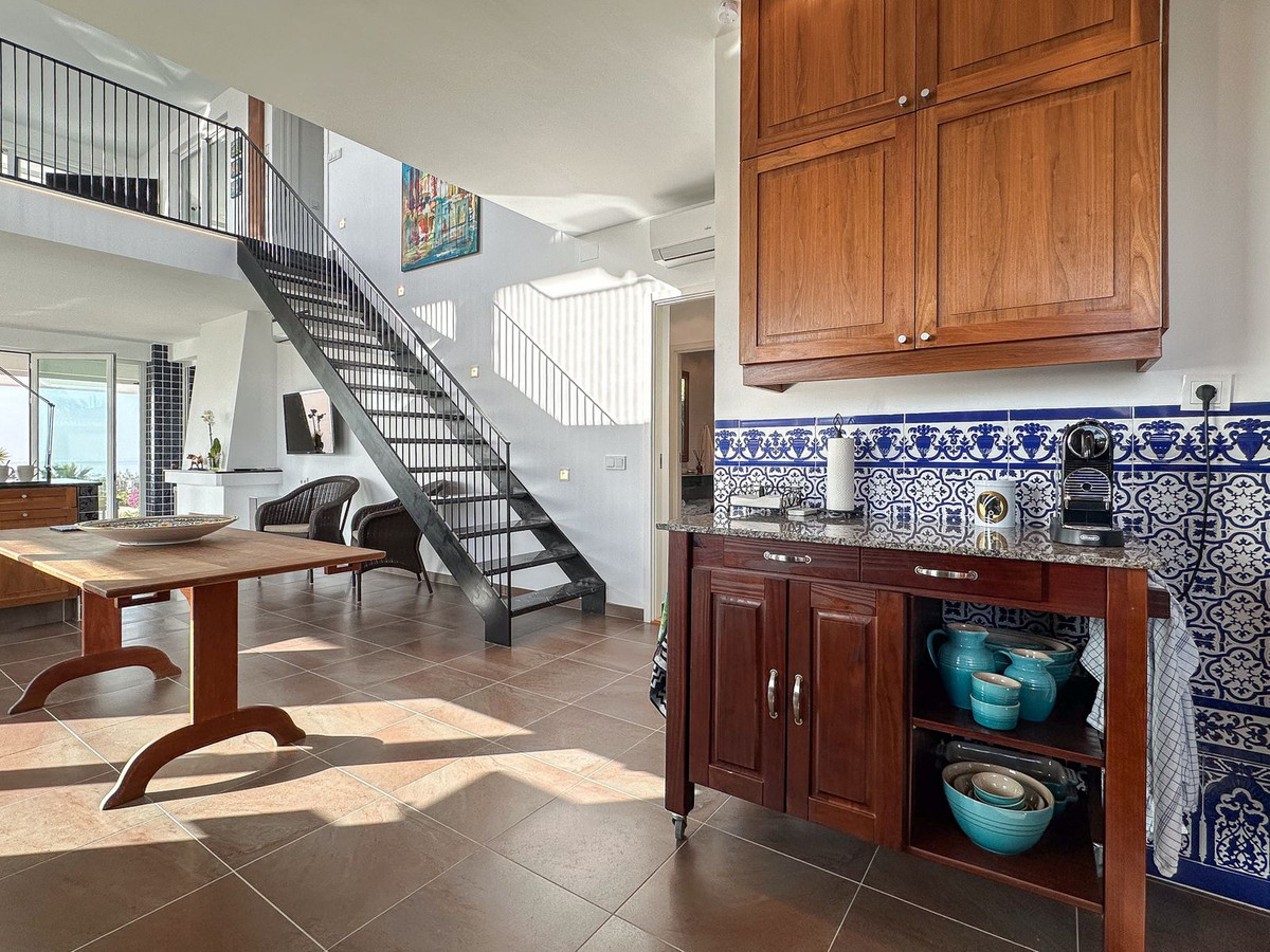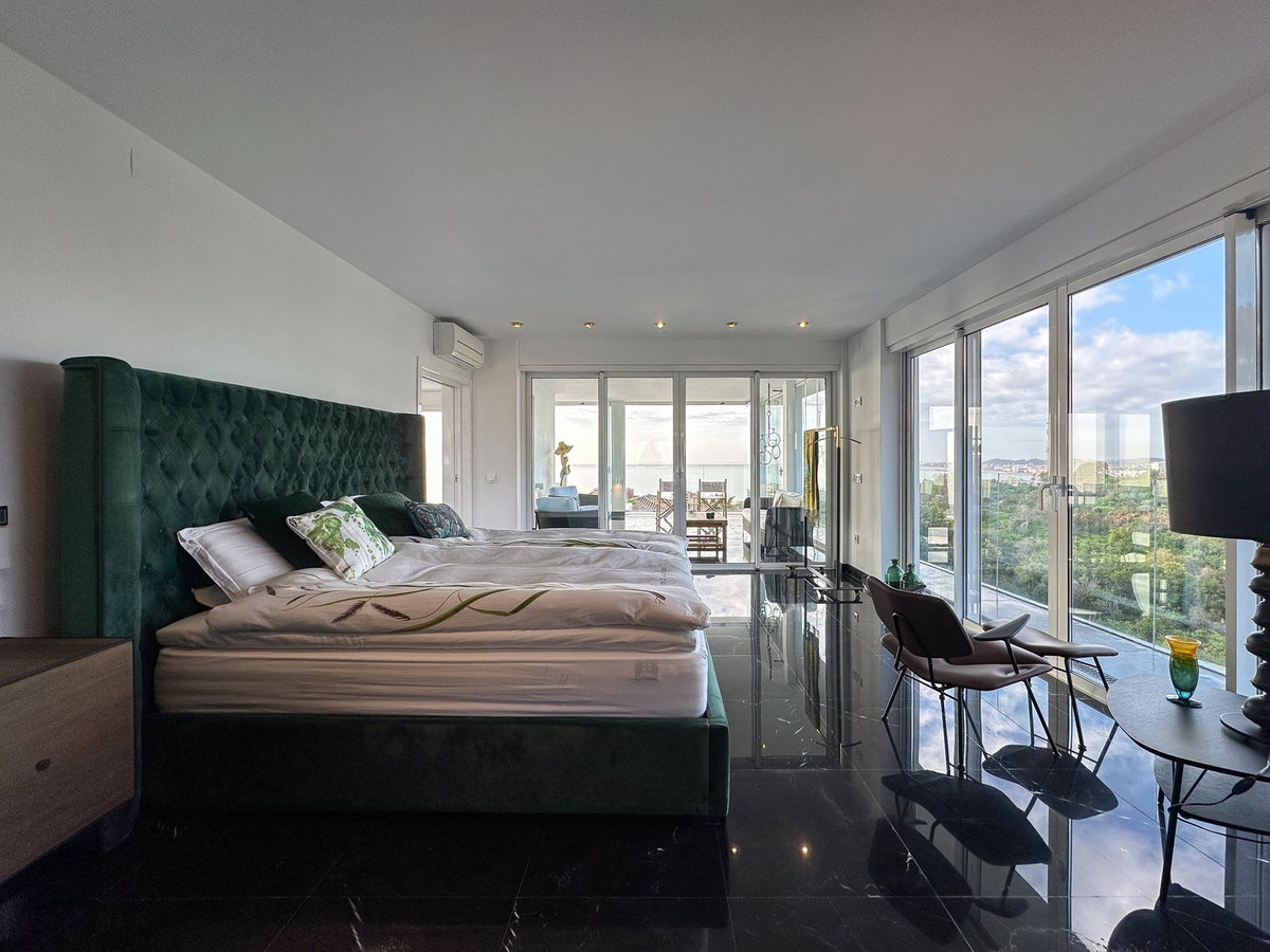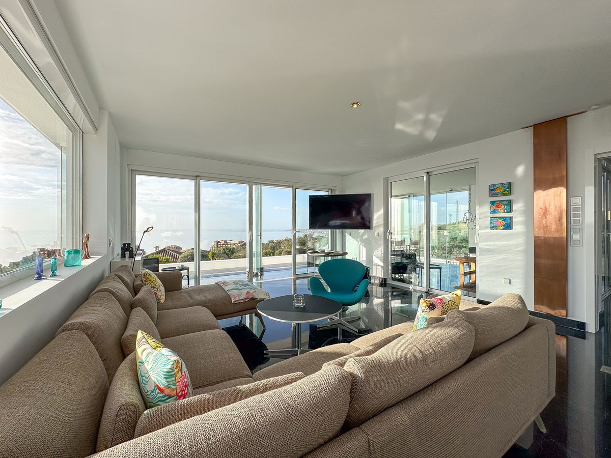 Denne enestående villa er et samdt drømmehus, hvor moderne design møder naturens skønhed. Med sin lyse og åbne atmosfære, kombineret med sofistikerede mørke detaljer, tilbyder ejendommen den perfekte balance mellem elegance og komfort. Fra de store vinduer kan du nyde den spektakulære havudsigt, der strækker sig ud mod horisonten, og skaber en rolig og fredfyldt stemning i hele villaen.