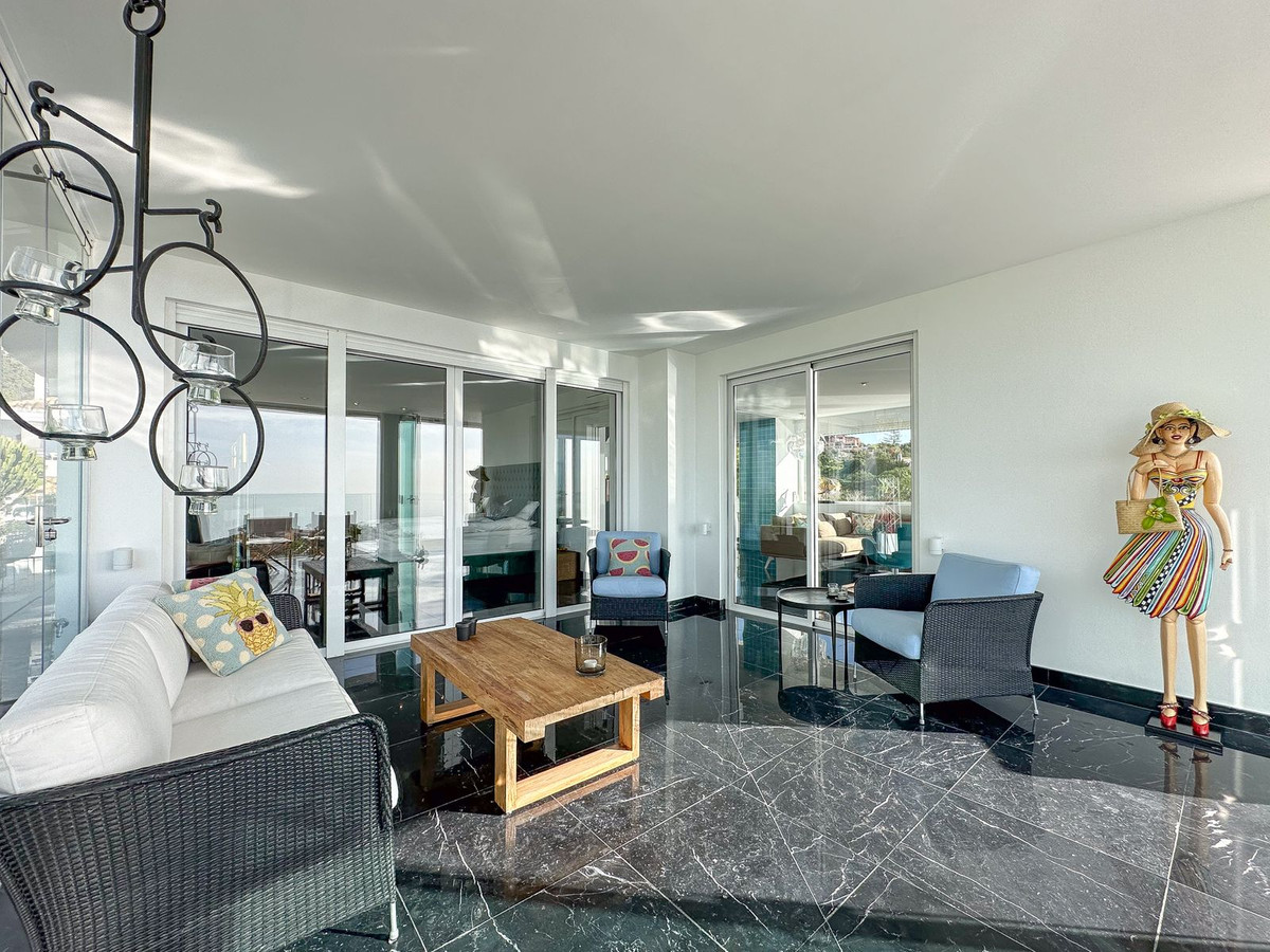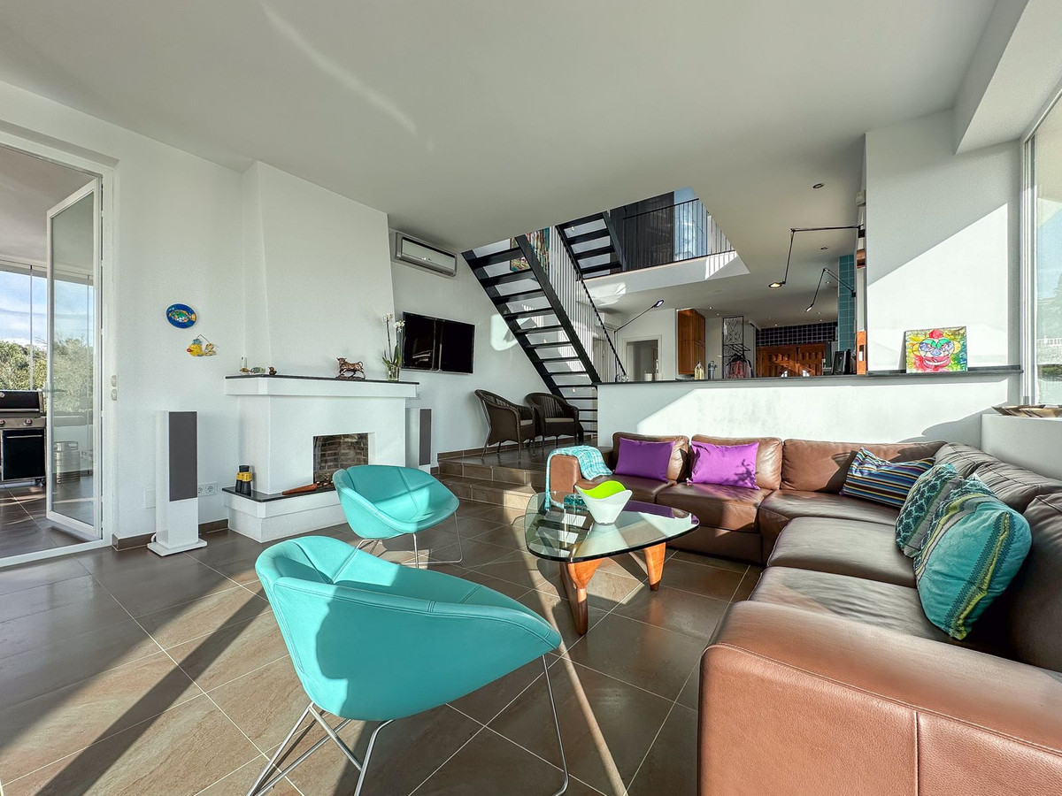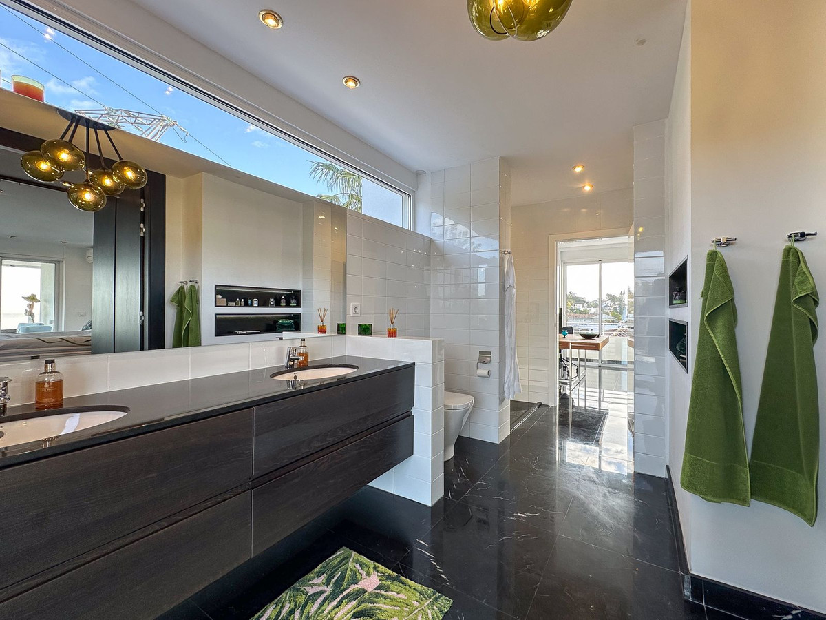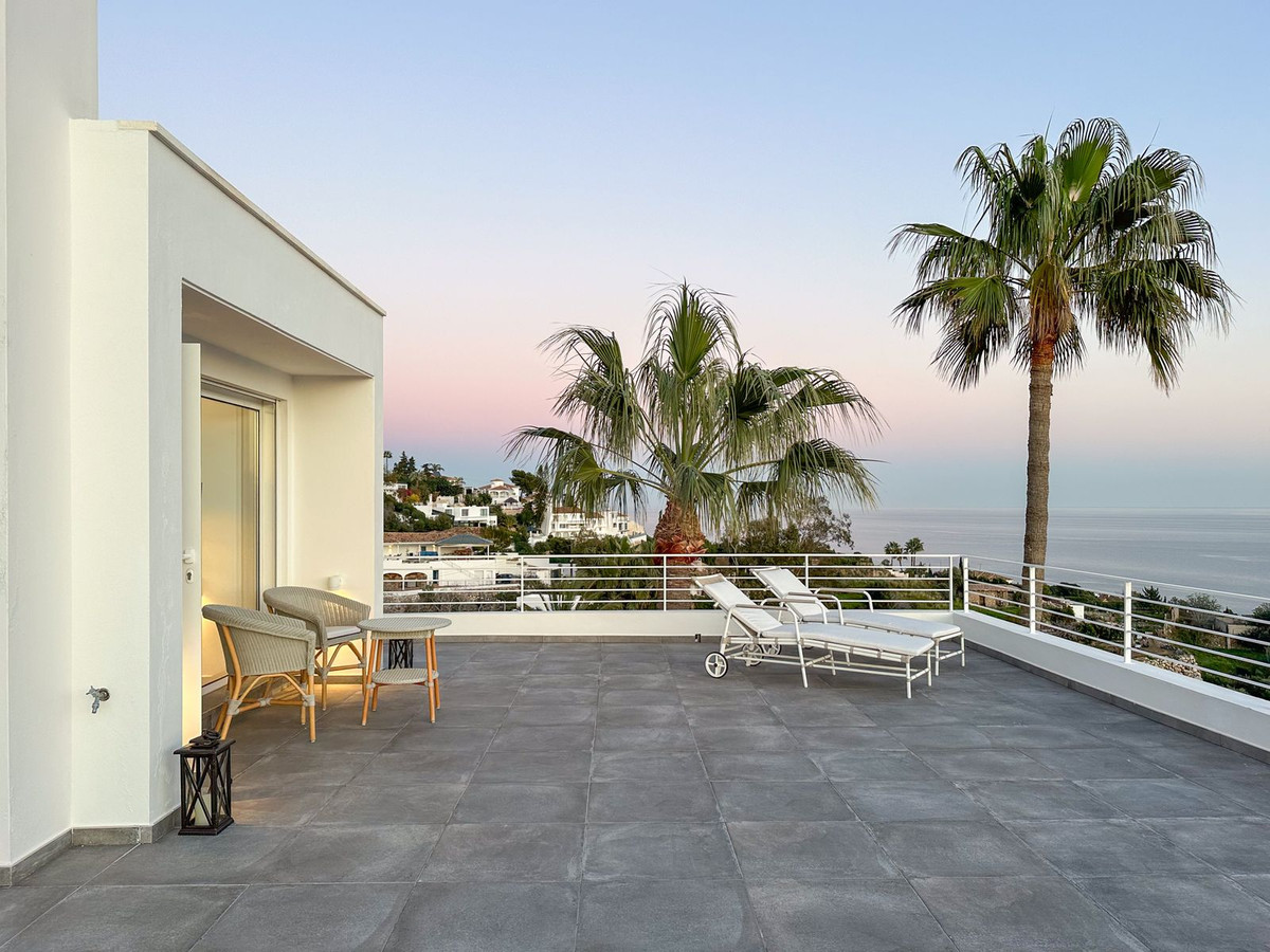 Denne enestående villa er et samdt drømmehus, hvor moderne design møder naturens skønhed. Med sin lyse og åbne atmosfære, kombineret med sofistikerede mørke detaljer, tilbyder ejendommen den perfekte balance mellem elegance og komfort. Fra de store vinduer kan du nyde den spektakulære havudsigt, der strækker sig ud mod horisonten, og skaber en rolig og fredfyldt stemning i hele villaen.
